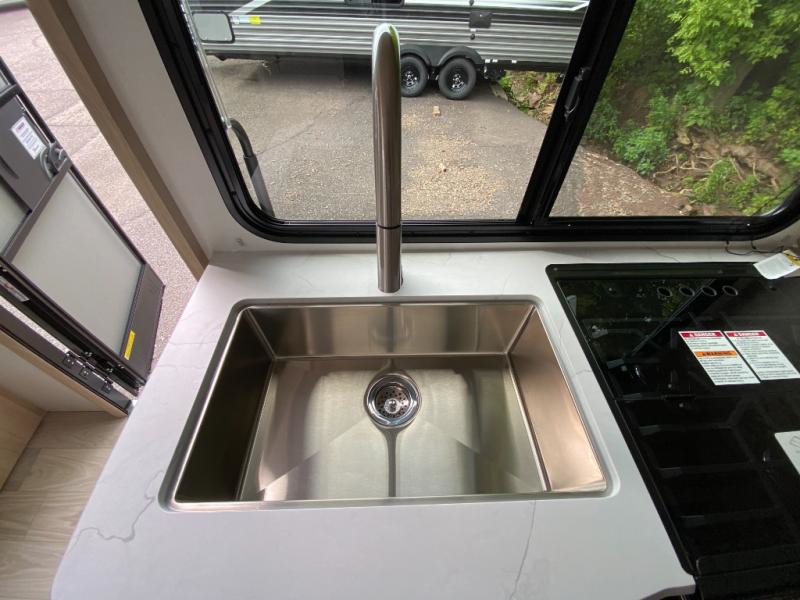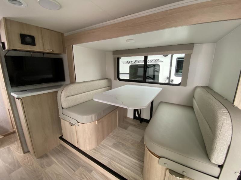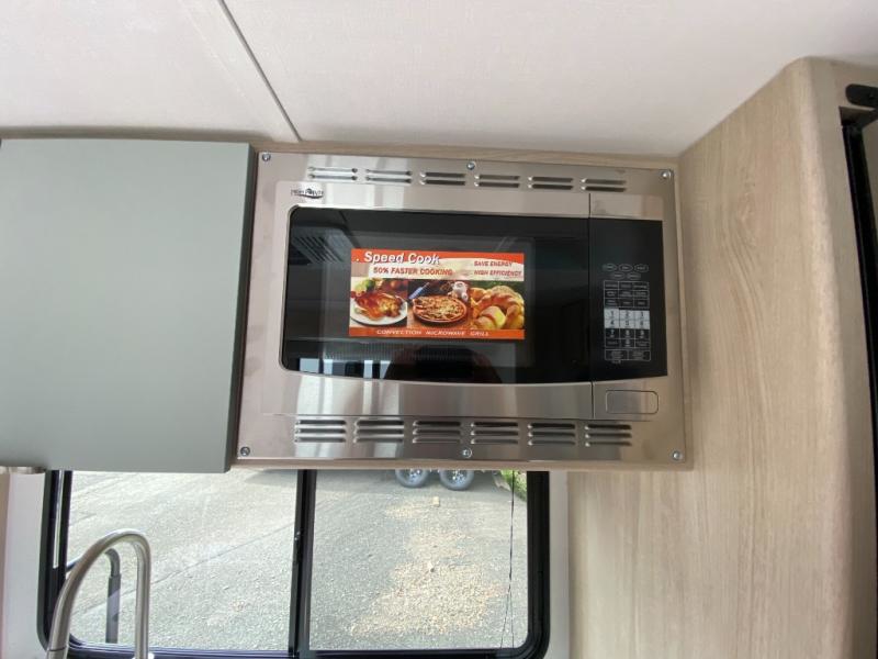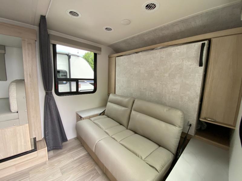 If you're looking for versatility then you need this travel trailer! Depending on the time of day you enter will determine whether you see the Murphy bed or the sofa up front. A slide out 44" x 72" booth dinette can be used for dining, playing games, and sleeping space at night. The full rear bathroom is equipped with everything you will need to freshen up each morning and features a wardrobe for your clothing and linens, and a pocket door into the bath saves space in the main room. The Smart TV is conveniently located so you can watch your favorite shows from the sofa or Murphy bed as well as the dinette, plus the pantry offers a place to store your snacks and such for easy access. The cook in your bunch will love all the amenities to make meals including the handy flip-up counter for more prep space.