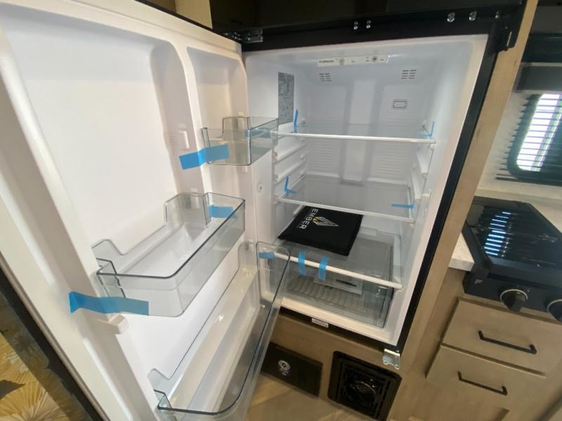 With any E-Series travel trailer by Ember RV you will enjoy a lightweight RV with all the "Essentials" needed for memorable trips in the great outdoors! Each model is constructed with durable laminated Azdel Onboard composite walls, a full walkable roof with a one-piece Tufflex PVC roofing material, and a gel-coated fiberglass exterior. The Dexter axles with E-Z lube hubs and forward self-adjusting electric brakes plus Goodyear Endurance tires will provide a smooth tow from home to campground. You will appreciate the Congoleum DiamondFlor "carpetless" interior that is easy to clean, and the hardwood framed cabinet doors will create a more residential feel. Each model includes a tankless on-demand water heater for endless hot showers and an 18,000 BTU Max Cool "Whisper Quiet" A/C, which is the largest single A/C in its class! If you're looking for off-grid capabilities, you might want to choose the optional Off-Grid Solar Package with 400 total watts of solar panels, a 2,000W Pure Sine wave inverter, and a Victron MPPT solar controller!