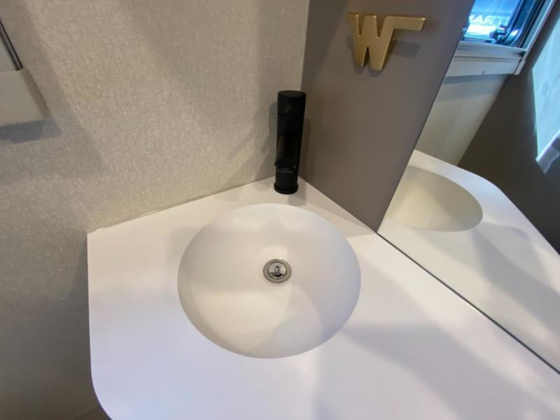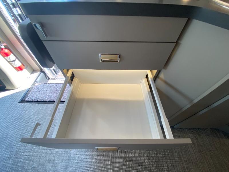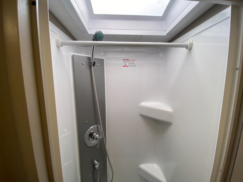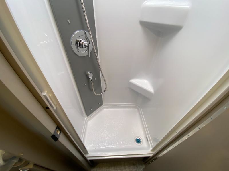 This is the perfect coach to travel with your honey or hiking buddy since there are two 32" x 76" twin beds in the back that can convert to a king-size bed if you choose! And the TrueComfort+ sofa with a movable pedestal table plus the cabover bunk will provide additional sleeping space. You can choose the optional low profile front cap with storage if you do not need the added sleeping space. An optional 3800W RVMP LP generator is also available with this model. There is a 25" x 30" shower across the hall from a private toilet and sink so two people can freshen up at once. You will also be able to create meals each day since there is a two burner cooktop and convection microwave, and the 12V refrigerator will keep cold items fresh!