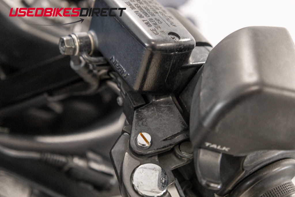 Rear Suspension: Pro Arm® single-side swingarm with Pro-Link® single shock with computer-controlled spring preload adjustment with two memory presets; 4.1 in. travel