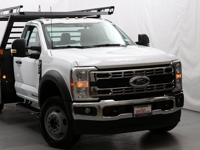 Ford F-450SD 2025 Oxford White Factory MSRP: $93,556 $10,156 off MSRP! 120V/400W Outlet, 190 Amp Alternator, 350 Amp Dual Alternators, 4 Speakers, 4-Wheel Disc Brakes, 6-Ton Hydraulic Jack, ABS brakes, Air Conditioning, AM/FM radio, AM/FM Stereo w/MP3 Player, Brake assist, Compass, Delay-off headlights, Dual 68 AH/65 AGM Battery, Dual front impact airbags, Dual front side impact airbags, Dual rear wheels, Emergency communication system: SYNC 4 911 Assist, Engine Block Heater, Front anti-roll bar, Front Center Armrest w/Storage, Front License Plate Bracket, Front reading lights, Fully automatic headlights, GVWR: 16,000 lb Payload Package, GVWR: 16,500 lb Payload Package, HD Vinyl 40/20/40 Split Bench Seat, Heated door mirrors, Illuminated entry, Internet access capable: FordPass Connect 5G, Order Code 650A, Outside temperature display, Overhead airbag, Overhead console, Panic alarm, Passenger cancellable airbag, Passenger vanity mirror, Platform Running Boards, Power door mirrors, Power steering, Power windows, Rear anti-roll bar, Rear View Camera & Prep Kit, Remote keyless entry, Security system, Snow Plow Prep Package, Speed control, Steering wheel mounted audio controls, SYNC 4 Communication & Entertainment System, Tachometer, Telescoping steering wheel, Tilt steering wheel, Traction control, Trip computer, Turn signal indicator mirrors, Variably intermittent wipers, Wheels: 19.5" x 6" Argent Painted Steel, XL Chrome Package. Power Stroke 6.7L V8 DI 32V OHV Turbodiesel 4WD 10-Speed Automatic 2D Standard Cab XL