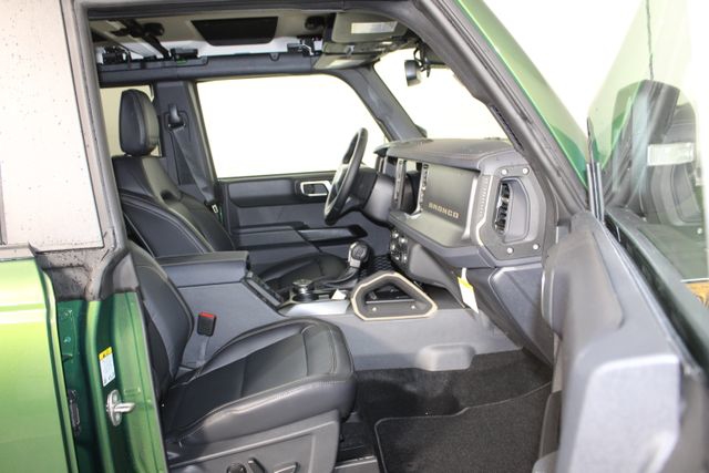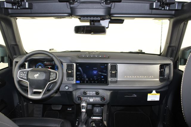 The Bronco Badlands' striking exterior features a bold and distinctive design, with a Black Appearance Package that adds a touch of sophistication. Step inside and you'll be greeted by a premium cabin adorned with high-quality materials, including Marine Grade Vinyl Heated Bucket Seats and a Leather-Trimmed/Vinyl Steering Wheel. The advanced technology suite, including the B&O Sound System, Connected Navigation, and Evasive Steering Assist, ensures a seamless and connected driving experience.