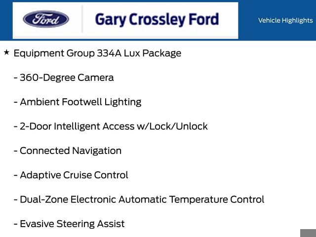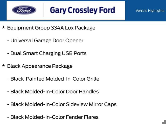 Come Experience the Crossley Difference! Although every reasonable effort has been made to ensure the accuracy of the information contained on this site, absolute accuracy cannot be guaranteed. Specifications, features, safety and warranty data are based on what is available as standard specs/features per trim level, for the designated model-year, and may not apply to vehicles with added packages or options. See dealer for written warranty information. Dealer makes no guarantees or warranties, either expressly or implied, with respect to the accuracy of any data listed on this page which was obtained from third party sources. All vehicles are subject to prior sale. Prices include all eligible factory rebates to dealer. Prices do not include upfits, plows, or other accessories. Price does not include applicable tax and any emissions testing charges. Prices include doc fee, license fee, and title fee. Doc fees vary by state (Rhode Island $399 doc fee and $20 title fee , Massachusetts $499, Connecticut $899, New York $175, Illinois $377.63, Florida $1195 doc fee and $349 electronic filing fee, Pennsylvania $490, Missouri $620.79, New Jersey $795). Price and availability subject to change. Manufacturer's Suggested Retail Price (MSRP) is listed for customer information and customer comparison purposes only, and the actual sales price may vary depending on changing market conditions and other factors. Any information contained on this page should be used for informational purposes only. All vehicles may not be physically located at this dealership but may be available for delivery through this location. Please contact the dealership for more specific information. You Will Be Satisfied. Gary Crossley Ford Price includes (applied rebates may or may not change depending on customer's eligibility): $2500 - Retail Customer Cash. Exp. 03/31/2026
