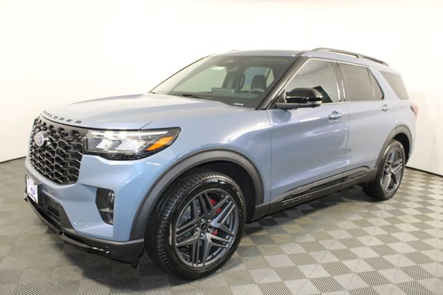 Ford Explorer 2026 Vapor Blue Metallic Factory MSRP: $53,850 $4,350 off MSRP! 110V/150W AC Power Outlet, 2nd Row Heated Seats, Ambient Lighting, Apple CarPlay/Android Auto, Auto-Dimming Interior Rear-View Mirror, Equipment Group 300A Standard Package, Exterior Parking Camera Rear, Heated front seats, Heated steering wheel, Heated Unique Cloth Captain's Chairs, Illuminated entry, Leather steering wheel, Manual-Folding Sideview Mirrors, Memory Driver's Seat, Performance Brakes, Power Liftgate, Premium Package, Remote keyless entry, ST-Line Street Pack, Wheels: 21" Magnetite-Painted Aluminum. 2.3L EcoBoost I-4 4WD 10-Speed Automatic 4D Sport Utility 20/27 City/Highway MPG ST-Line