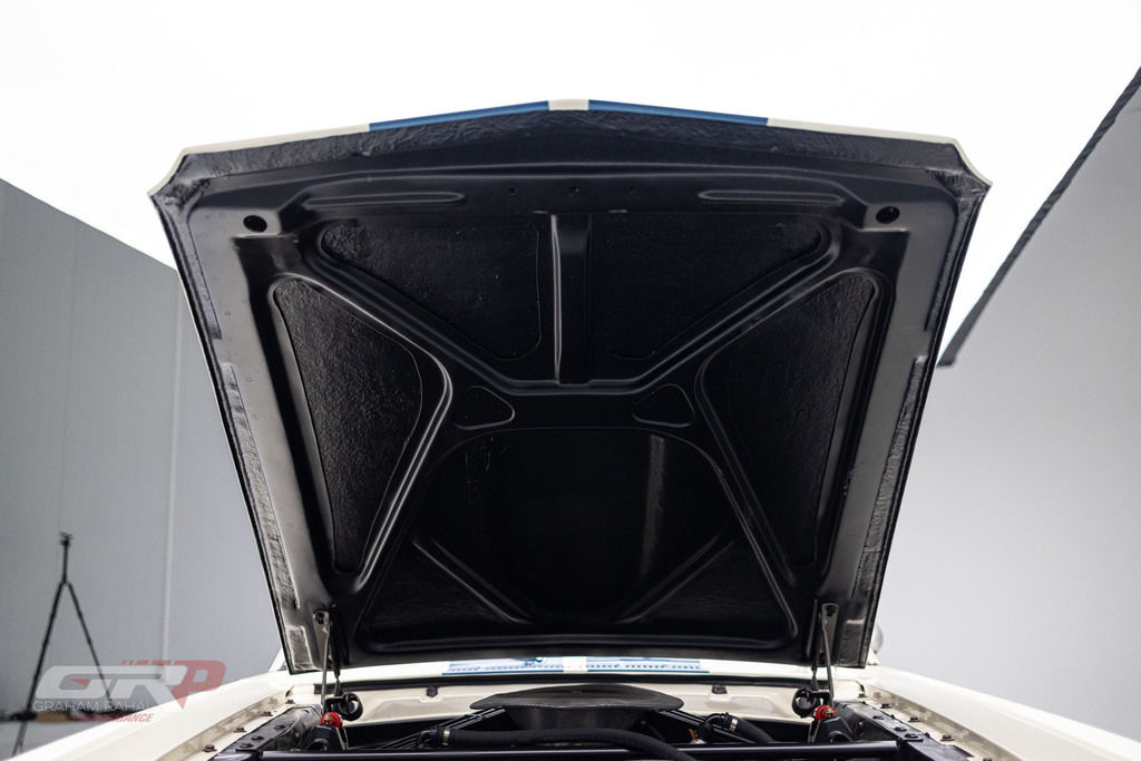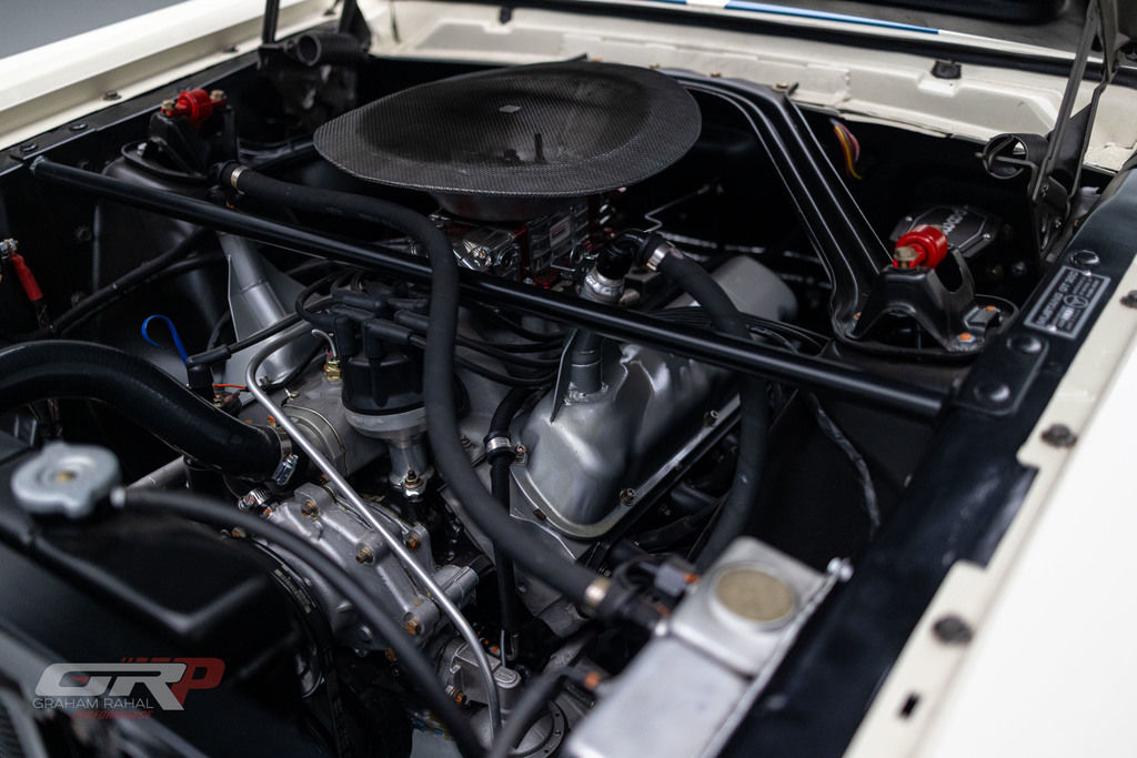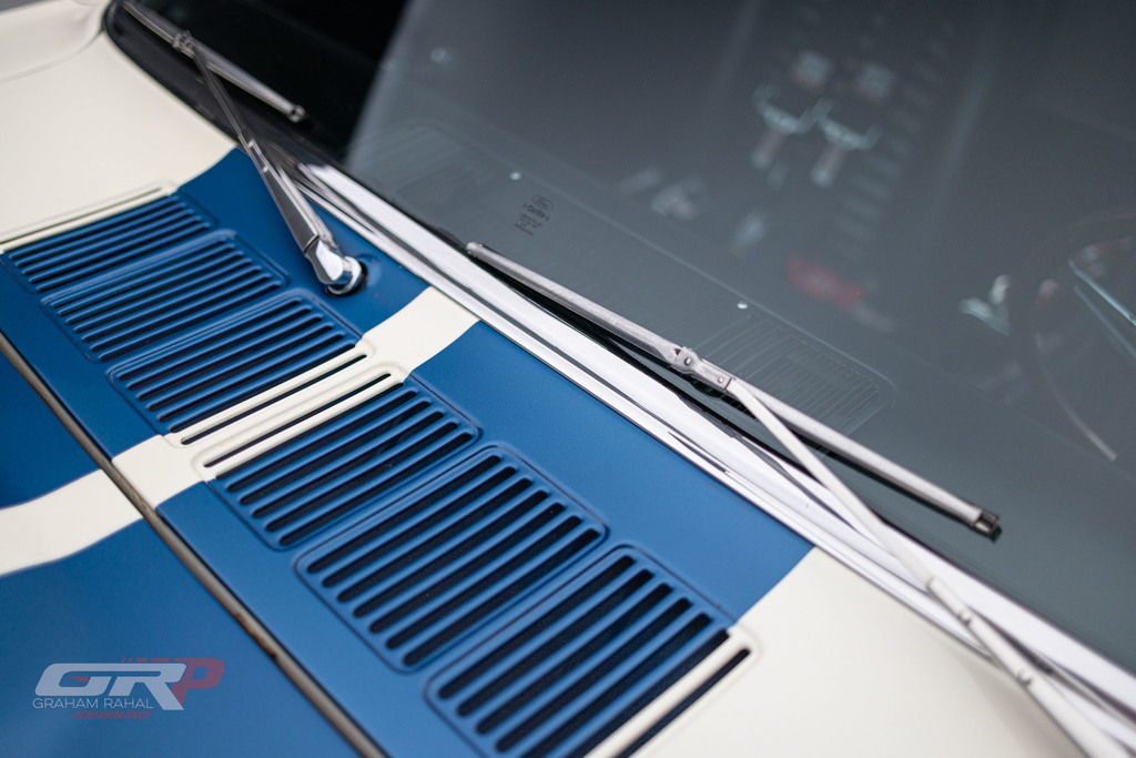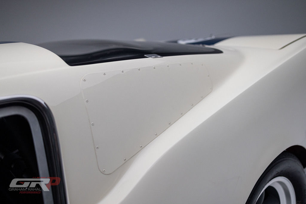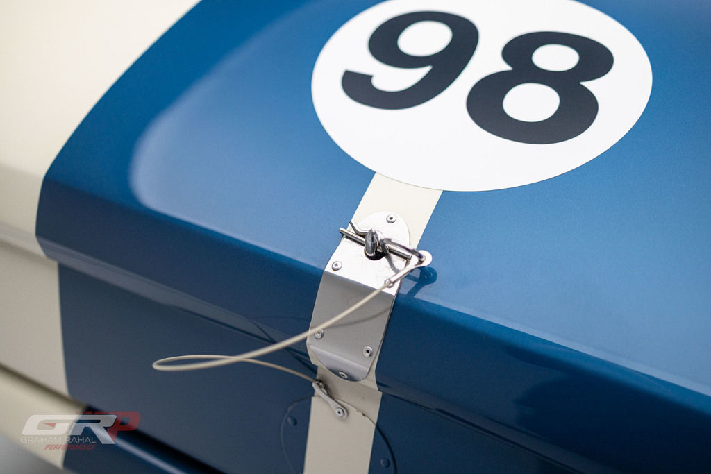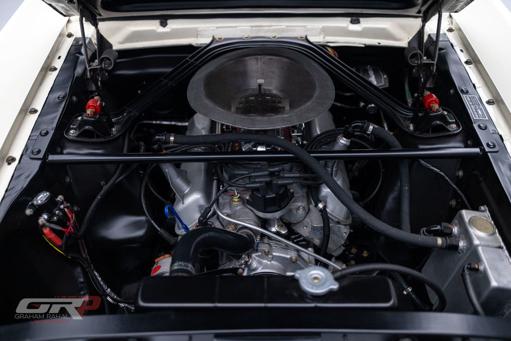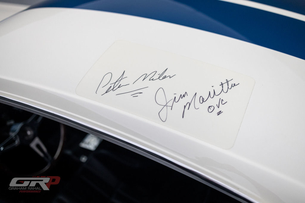 This 1965 Ford Mustang fastback was modified in the style of a GT350R and was rebuilt by Original Venice Crew as a Special Ken Miles Edition in 2022. The body features flared rear fenders and a fiberglass hood and is finished in Wimbledon White with Guardsman Blue stripes. Inside, the cabin houses a low-back competition seat for the driver along with a roll bar, harnesses, and an R-style steering wheel and gauges. The 331ci V8 was installed during the 2022 build and is linked with a four-speed BorgWarner-style manual transmission. Additional equipment includes 15? Torq Thrust-style wheels, Koni shocks, an electric fuel pump, a Wilwood brake master cylinder, and an aluminum radiator. This GT350R-style Mustang was acquired by the current owner in 2023 and is offered on dealer consignment with a clean California title.
