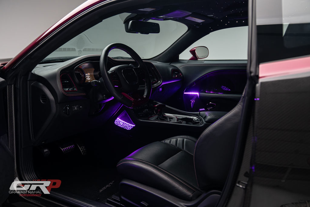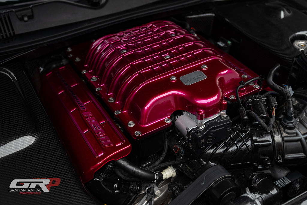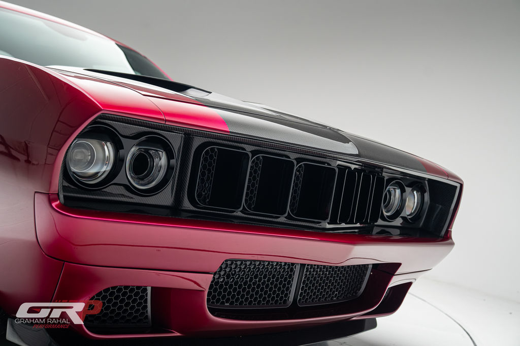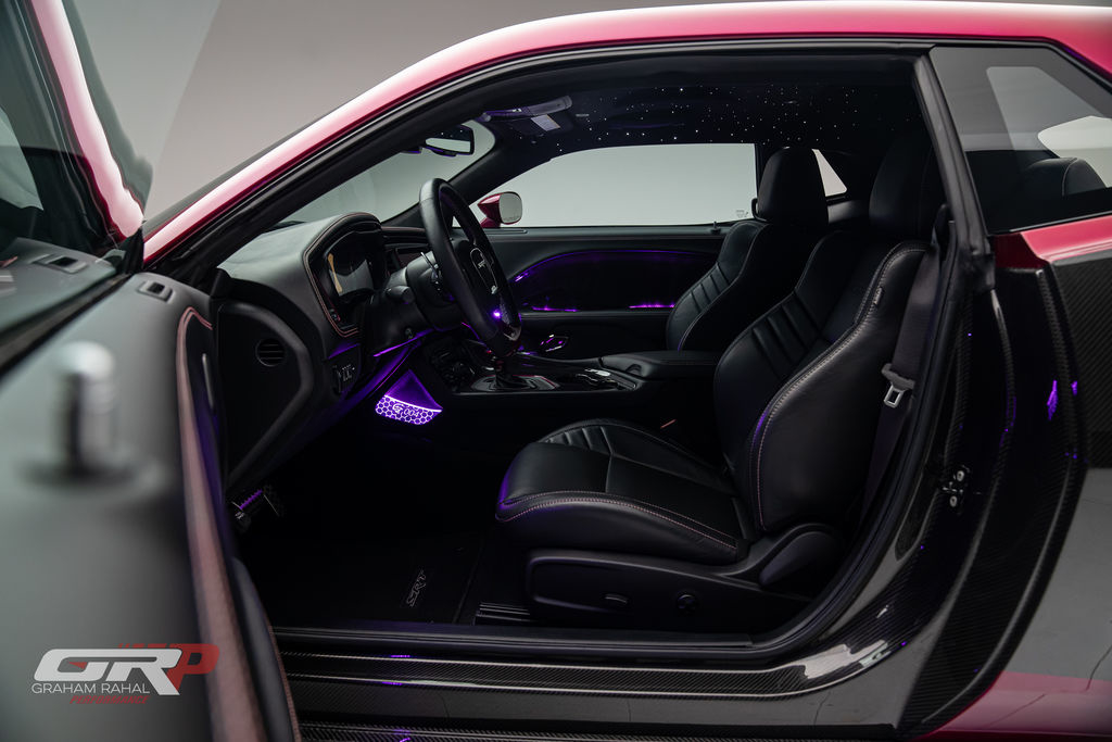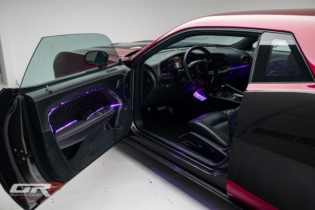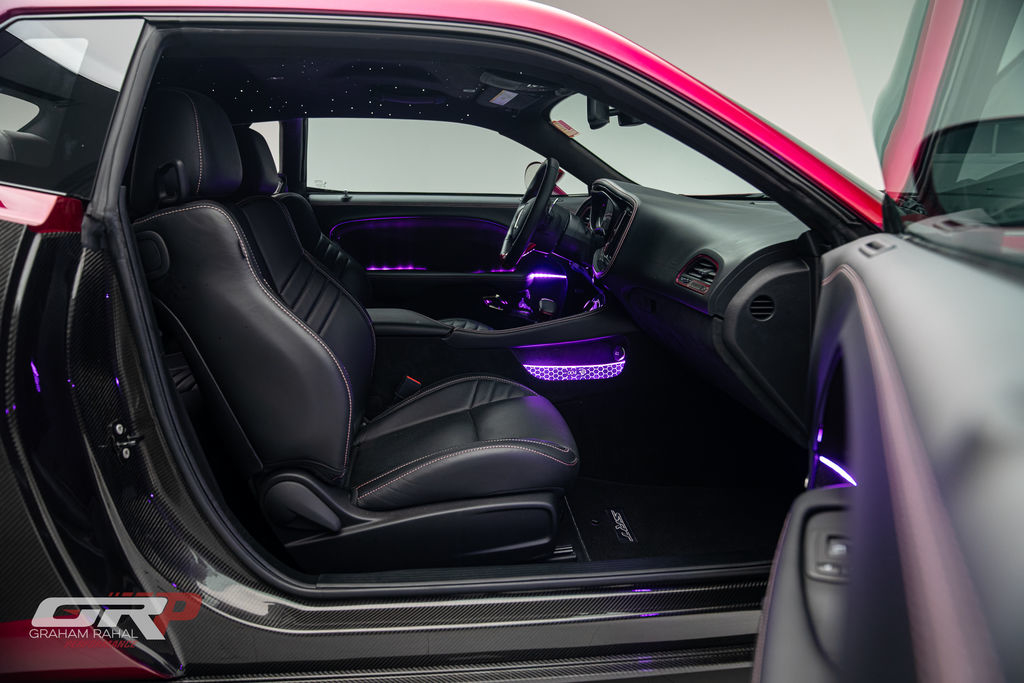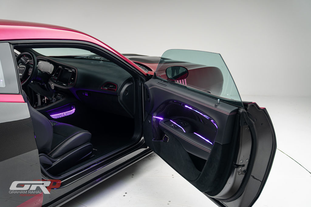 Custom Pink Metallic 4 stage Candy Paint with clear carbon hood and hemi graphic