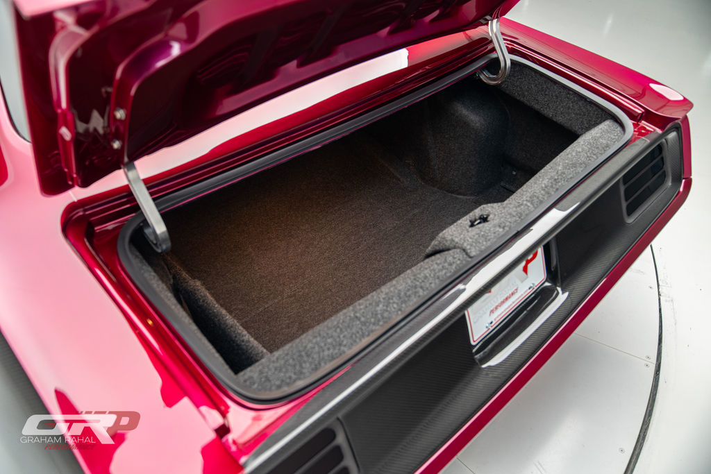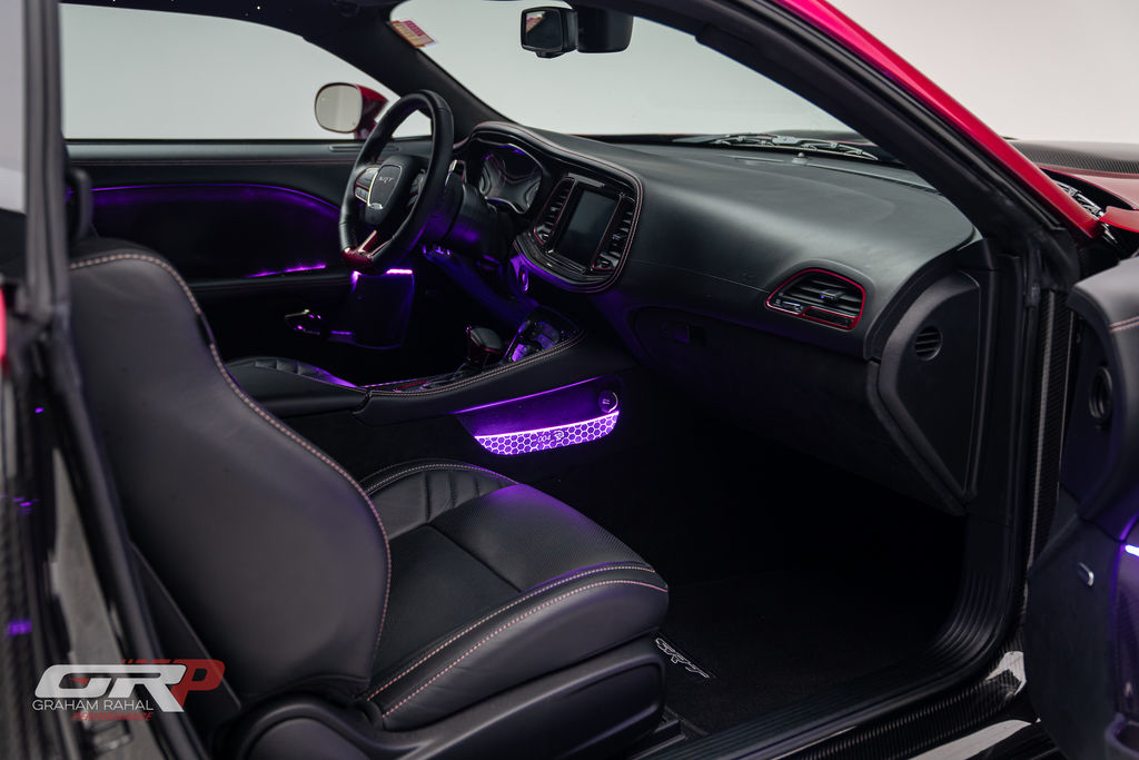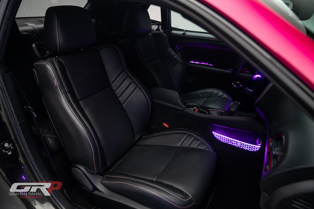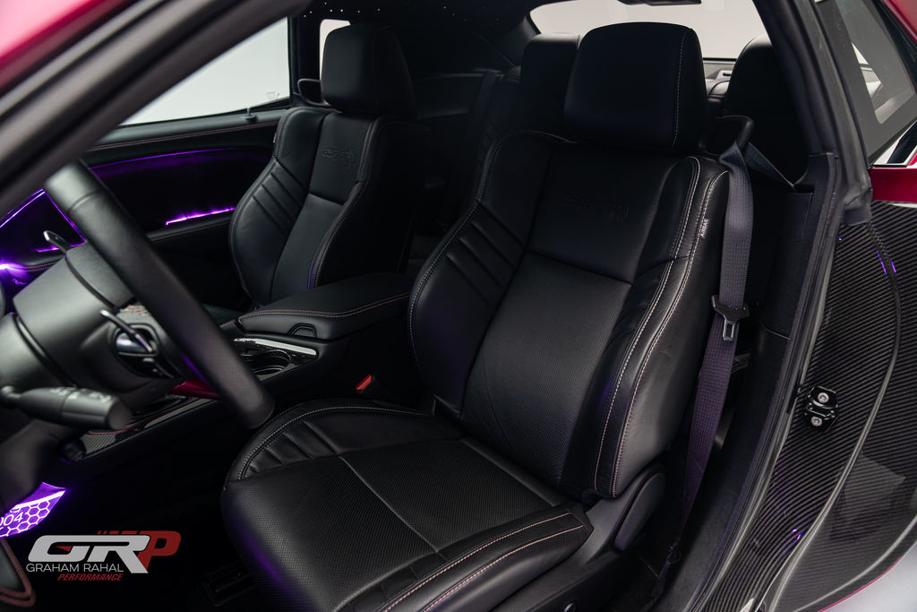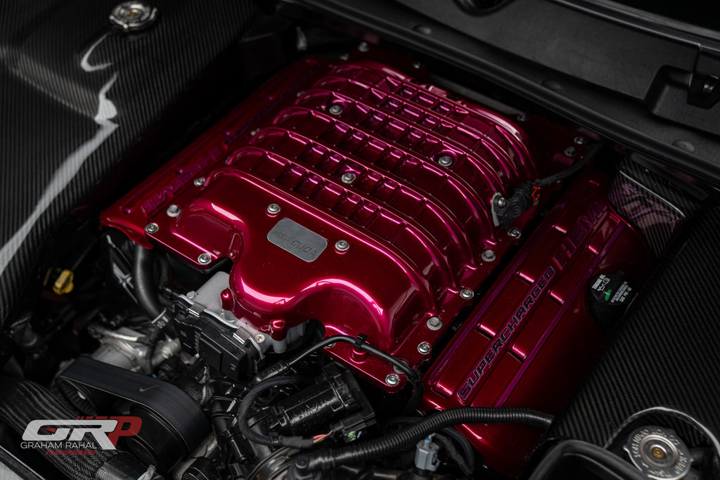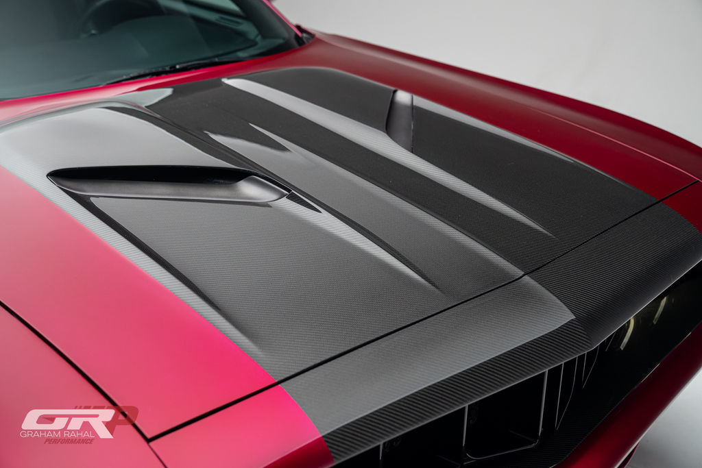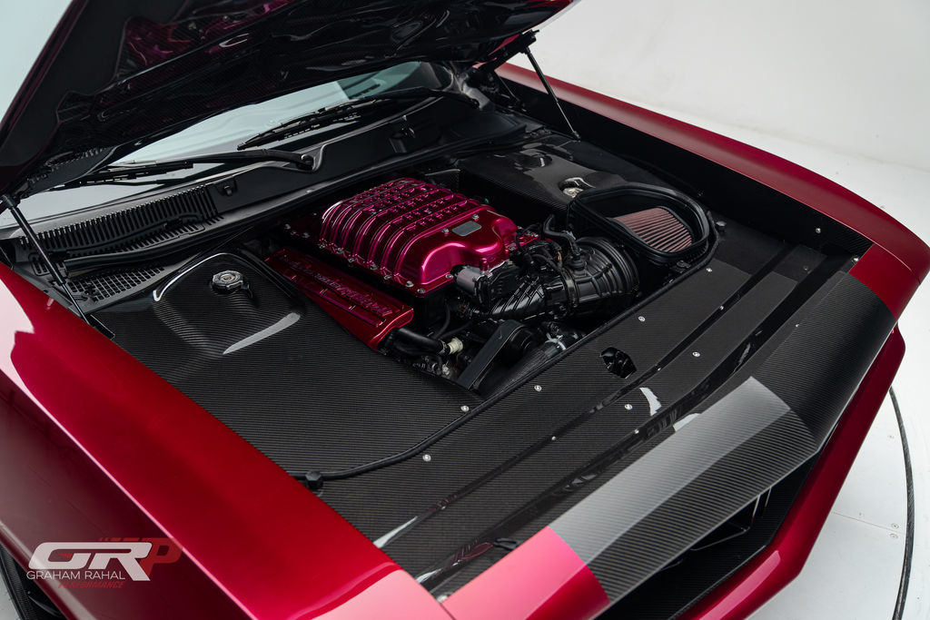 Custom Pink Metallic 4 stage Candy Paint with clear carbon hood and hemi graphic