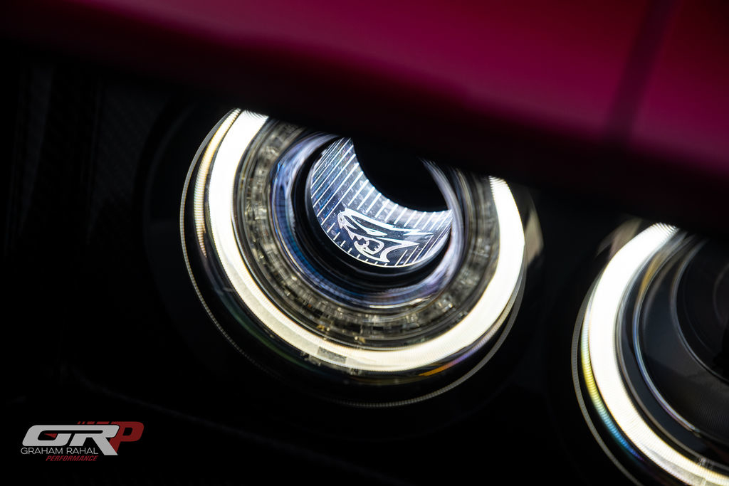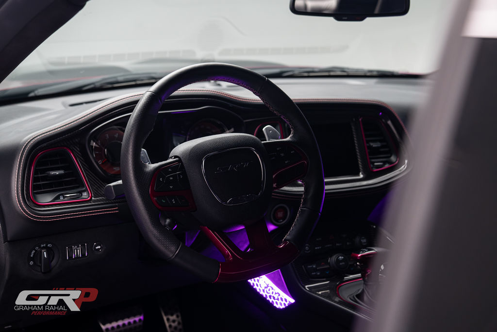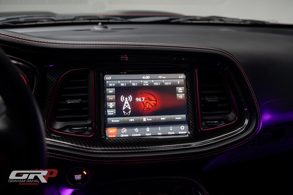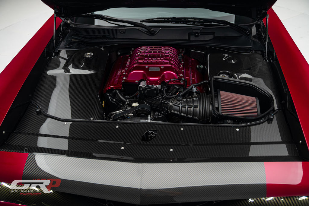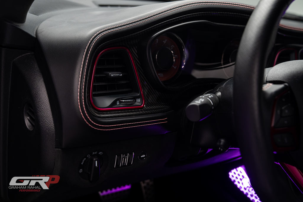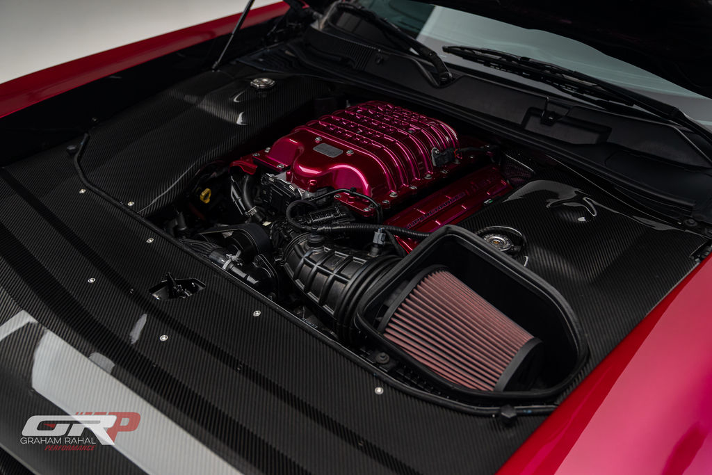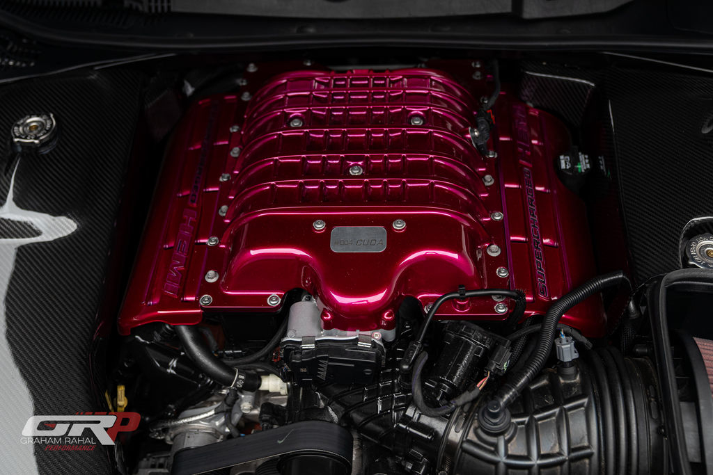 Custom Pink Metallic 4 stage Candy Paint with clear carbon hood and hemi graphic