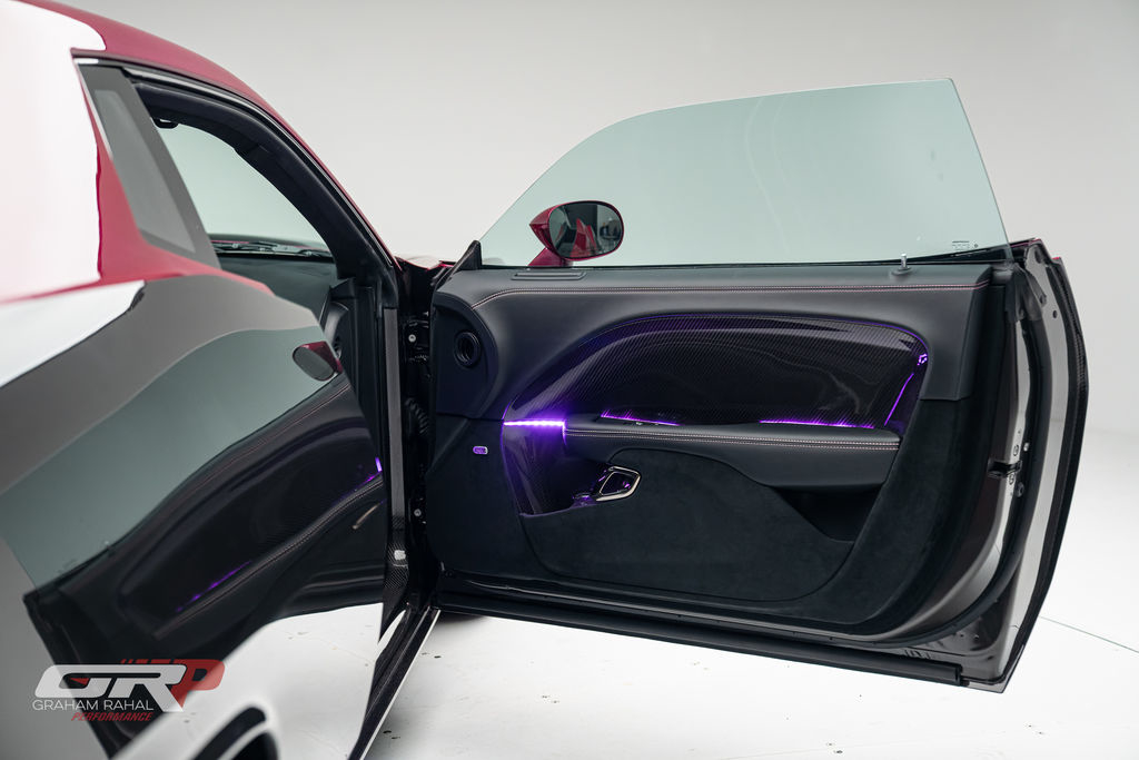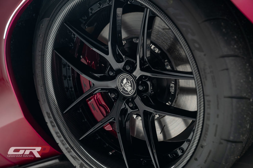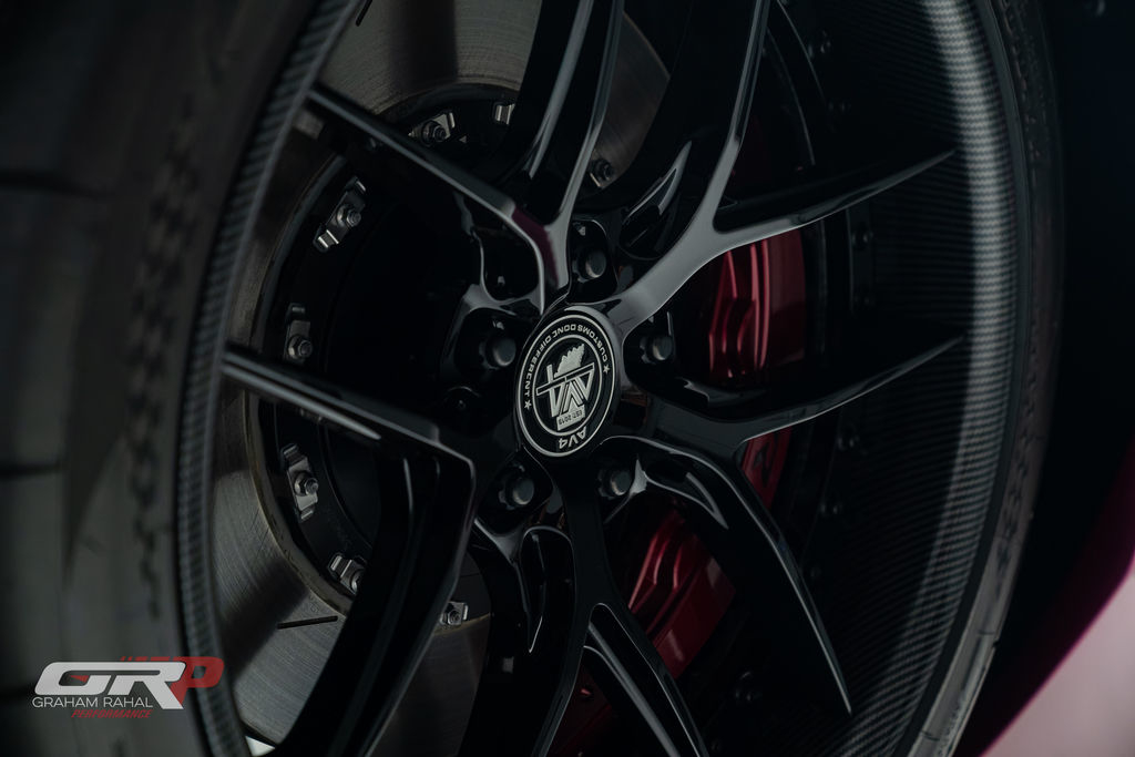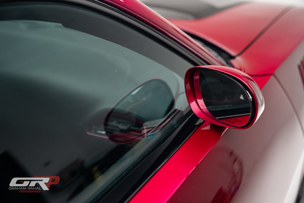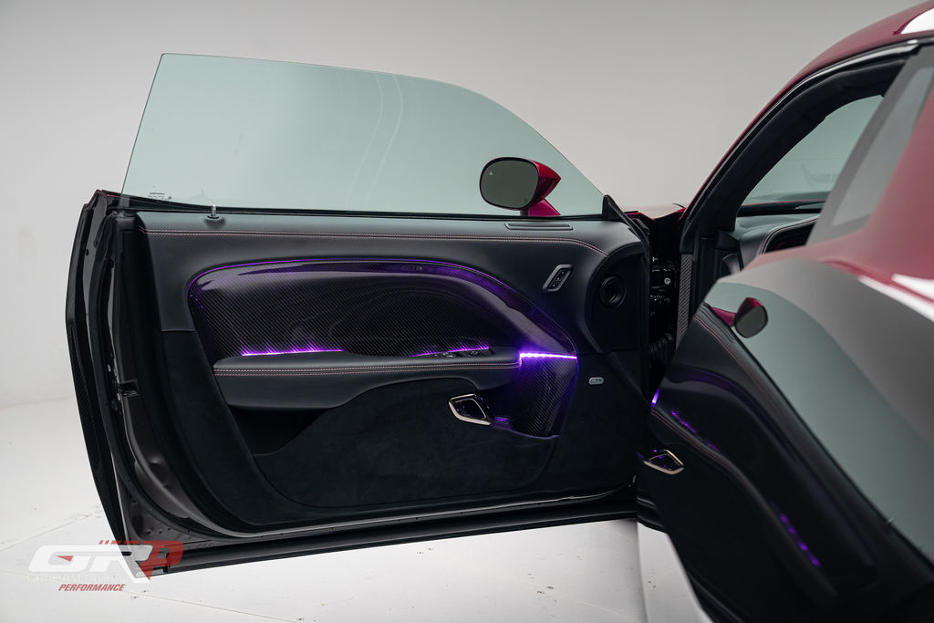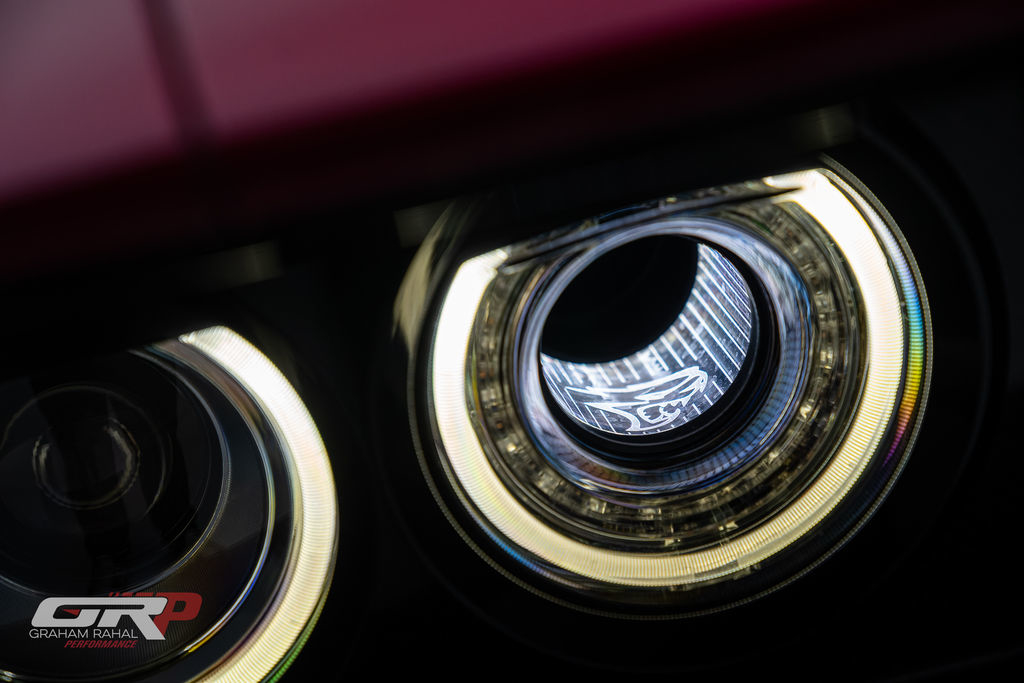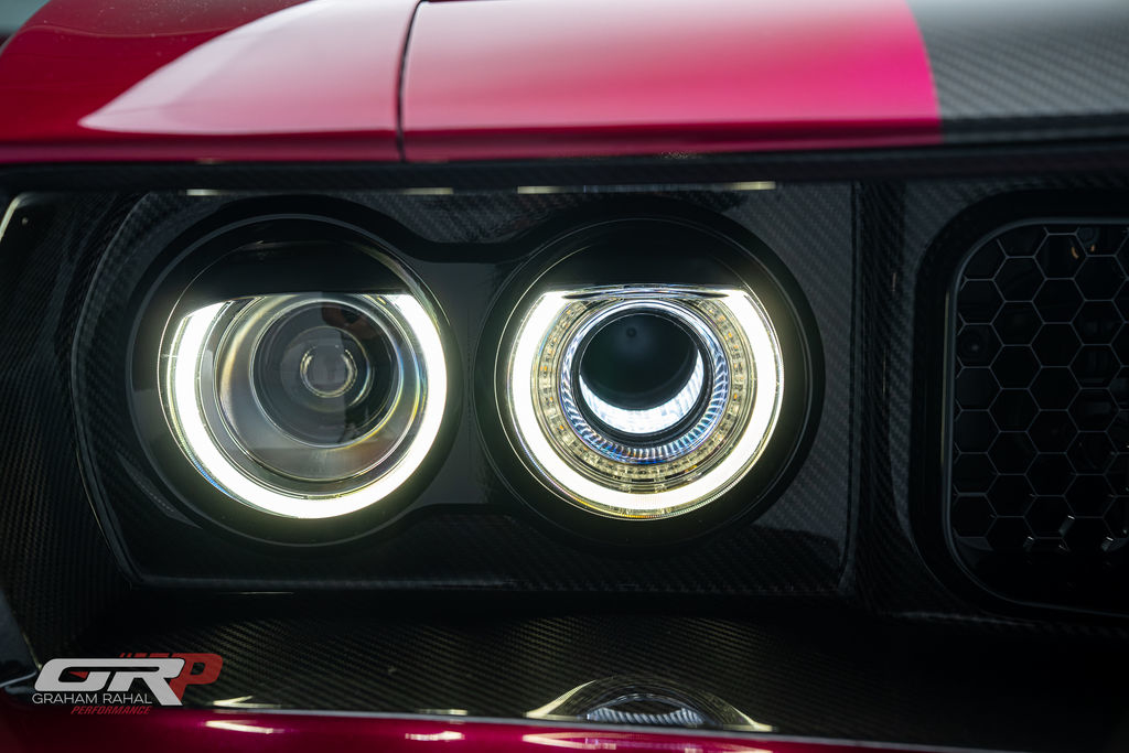 Custom Pink Metallic 4 stage Candy Paint with clear carbon hood and hemi graphic