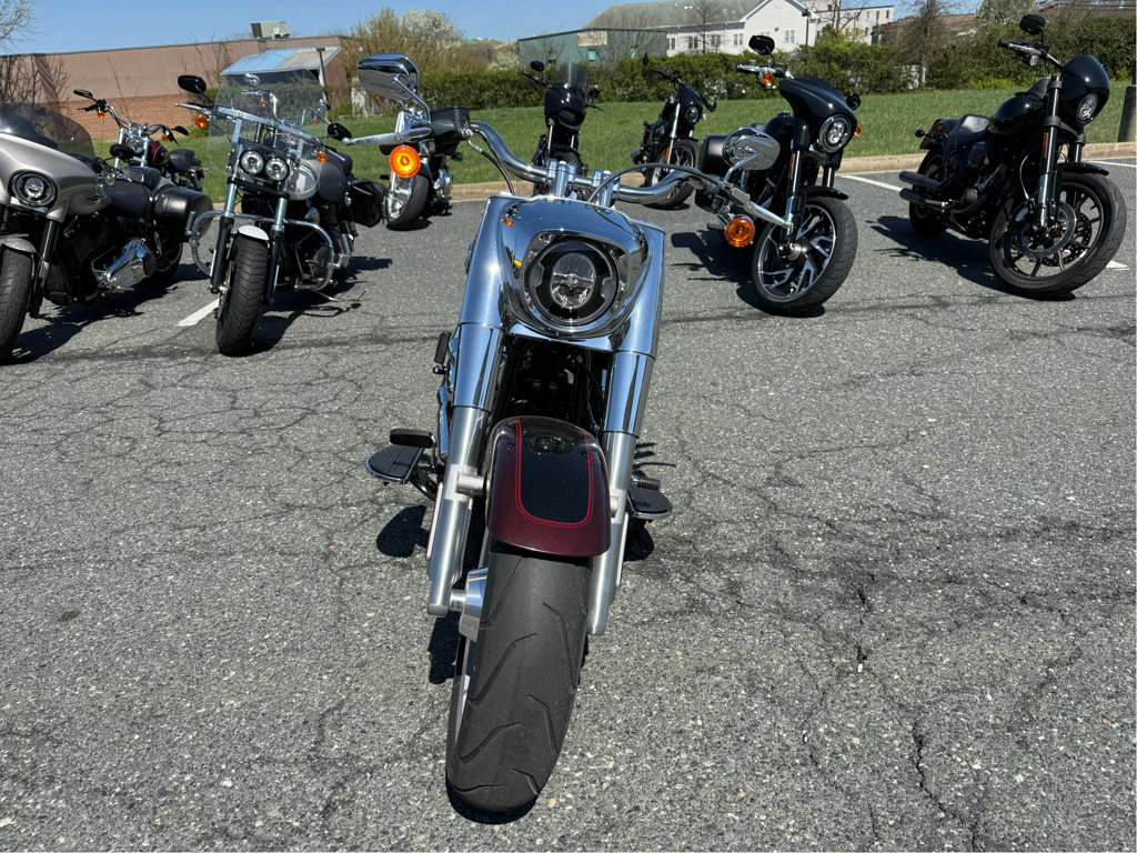 Sleek Design: The Fat Boy 114 features solid Lakester disc wheels, a signature LED forward lighting system, and a squared-off headlamp, giving it a distinctive and modern look.