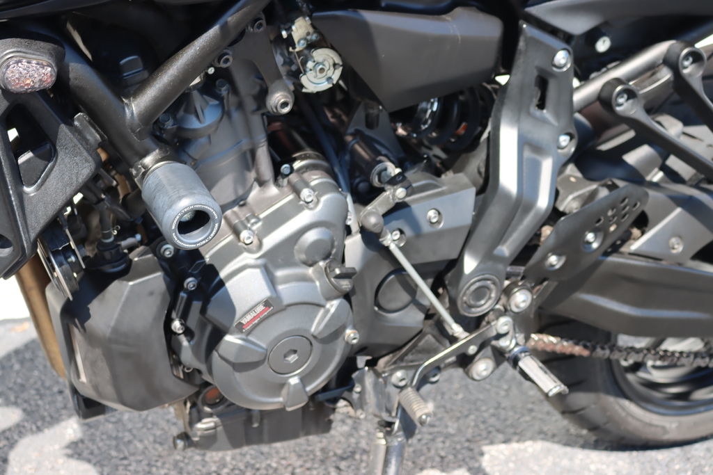 ENGINEThe MT-07 features an updated, compact 689cc liquid-cooled, inline twin cylinder, DOHC engine with fuel injection. The unique power character of the engine provides outstanding low- to mid-range torque with a linear throttle response and strong high-rpm pulling power. Maximizing riding excitement in the real world, the engine maintains the same level of response due to its intake air duct design, exhaust system specs - now integrated 2-into-1 exhaust pipes and muffler - and updated ECU specs. The fuel injection settings were also optimized to bring refinements to the engine’s linear response characteristics while the throttle is slightly open at low rpm. Other updates include new valve seats with excellent abrasion resistance for the exhaust side, improved gearshift feel thanks to different cut angles for the dog gears, and repositioning for the catalytic converter - now closer to the headers - and oxygen sensor.
