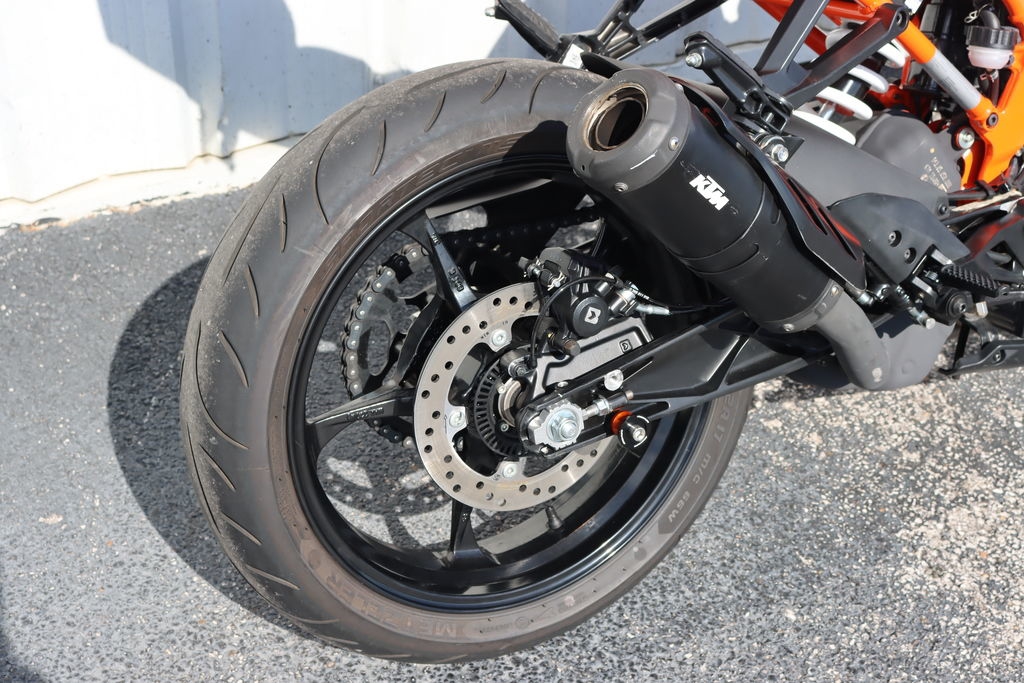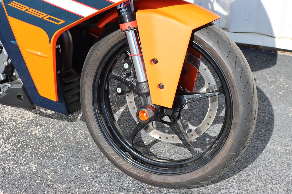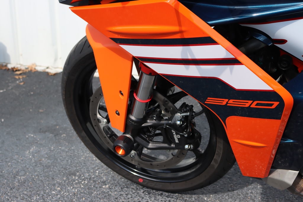 CHASSISAn ultra-lightweight frame design saves 3.3 lbs (1.5 kg) over the previous generation, making use of a trellis frame and bolt-on subframe, which also gives the KTM RC 390 improved high-speed stability and increased rider feel. The result? Faster lap times.