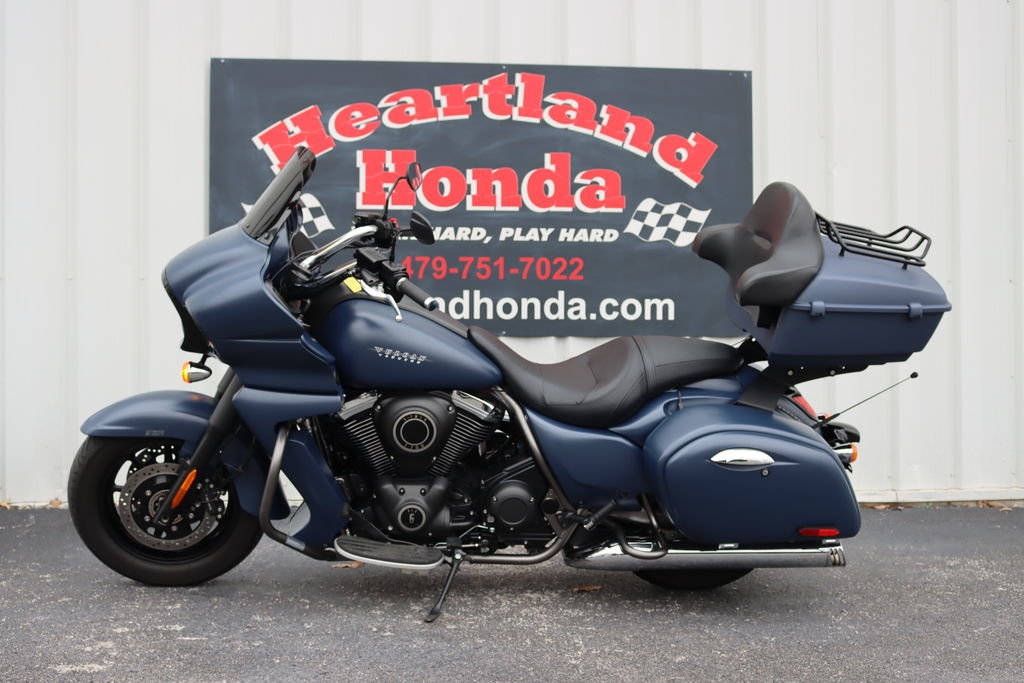 Drawing its muscle from a powerful V-twin engine, the Vulcan® 1700 Vaquero® ABS bagger cruiser is a dominant force on the road.