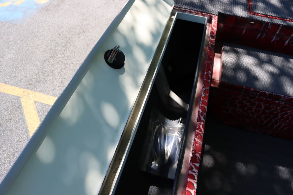 Hunt Deck, Hybrid Hull, Extended Deck, Recessed Foot Tray, Trolling motor Bracket, seat base install, LED Side Lights (shark eyes), Catwalks enclosed, rear storage bench, console, front storage box, day box, welded cleats, enclose interior of crimps, Hydraulic Remote Steering, Gator Skin Paint, Automatic Bilge, 12v plugs, Hydroturf coverings, Trolling motor plug, 27gallon gas tank, Premium Gt seats, Livewell, hydraulic jack plate, rocker switch panel, extreme navigation lights, Perko switch, Garmin gps