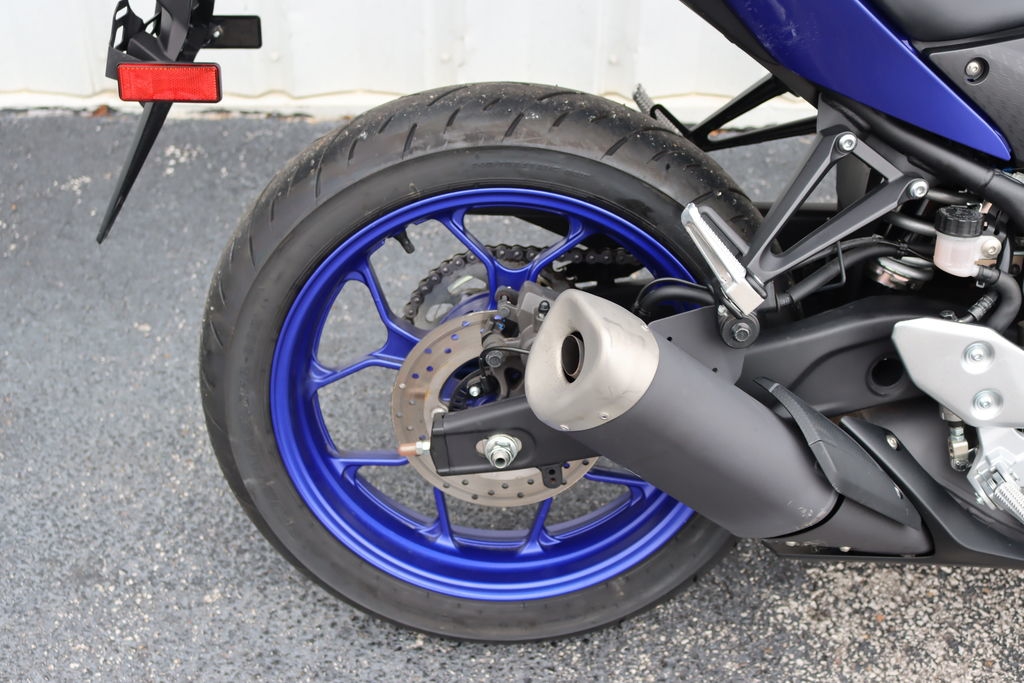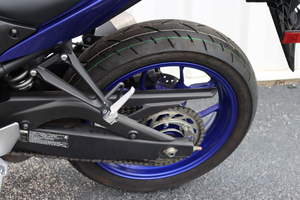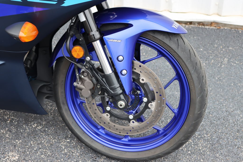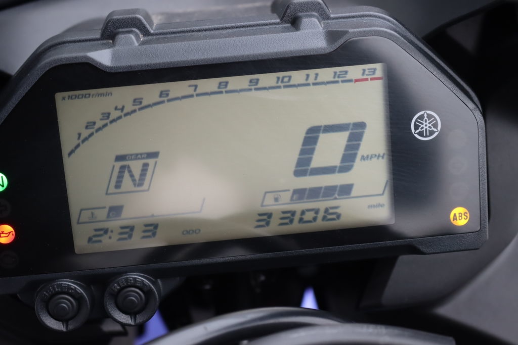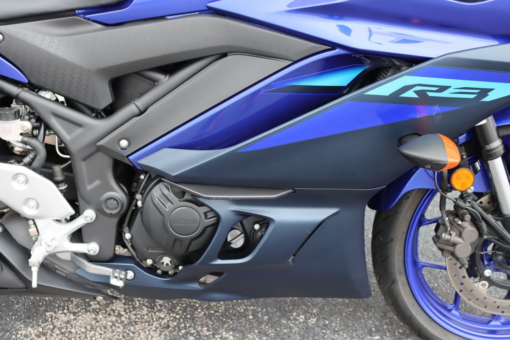 The R3’s inverted fork works with a Monocross rear shock to provide exceptional handling, with balanced chassis rigidity, a near 50/50 weight balance, and damping and spring settings designed for a wide range of road conditions.