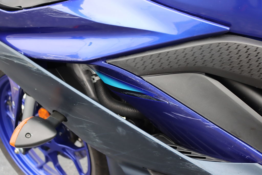 ADDITIONAL FEATURESThe R3’s aggressive design continues the legendary styling born from the YZR-M1 MotoGP® machine and improves overall aerodynamics at high speeds too. The glaring face of the R3 features compact LED headlights with a central air duct that maximizes cooling airflow for the engine.
