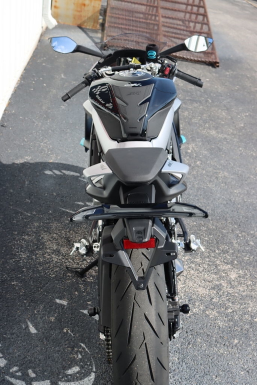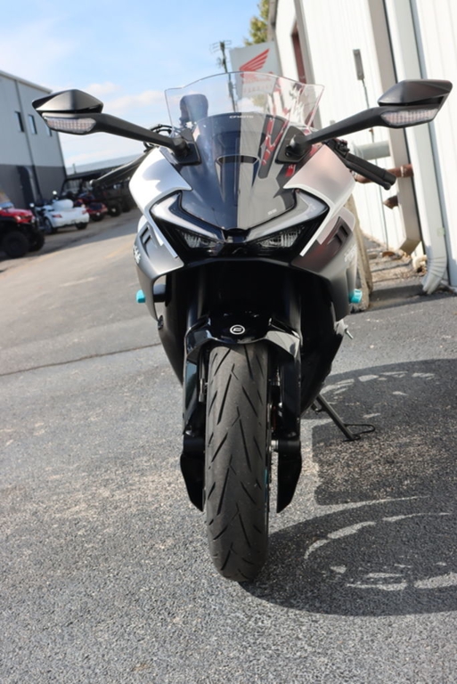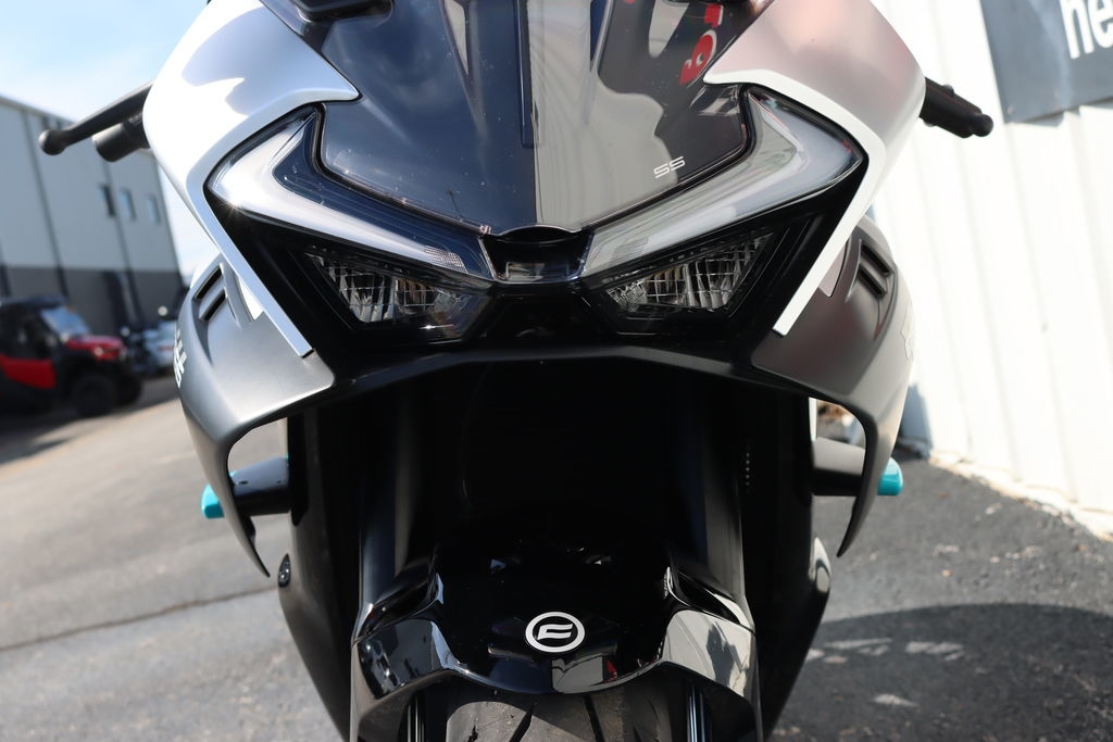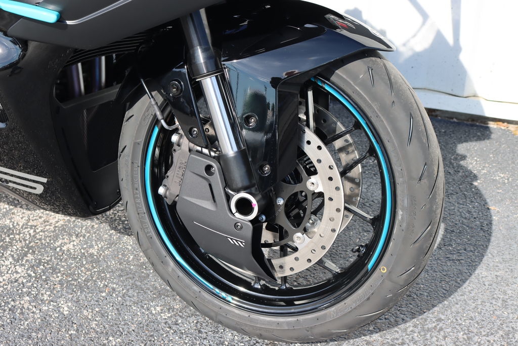 The striking blend of cutting-edge design and aggressive styling is inspired by its racing pedigree, combining form and function seamlessly. The bike features unique checkmark shaped LED running lights that dominate the front end, giving it a distinctive and modern look. Aerodynamic fairings optimize airflow, enhancing performance.