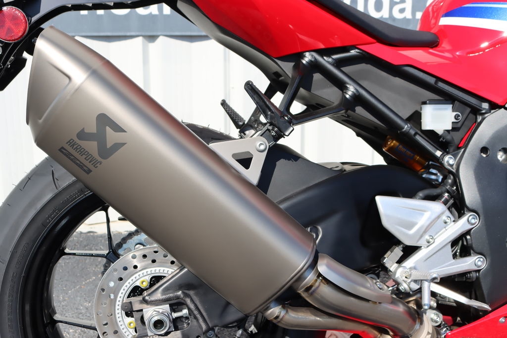 Crafted for those who strive for greatness, the CBR1000RR-R Fireblade SP brings MotoGP-proven technology to a street near you. And this year's new 2025 model has it all: more midrange power, sleeker aerodynamics, a responsive engine, Akrapovic titanium muffler, and Öhlins electronic suspension. So, hop on and rule the roads.