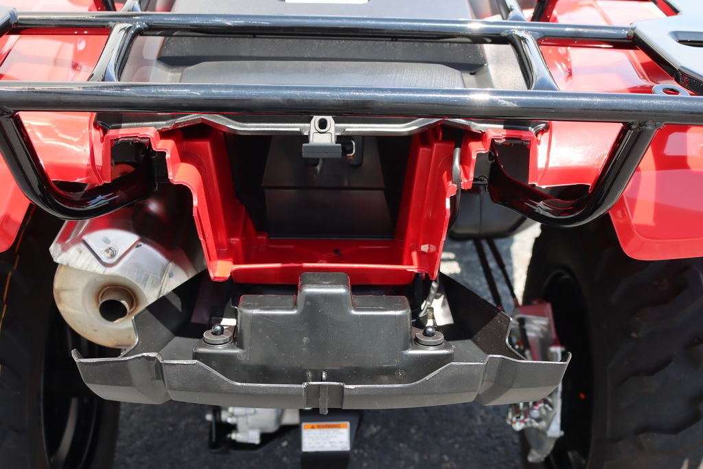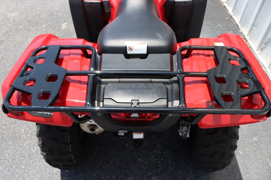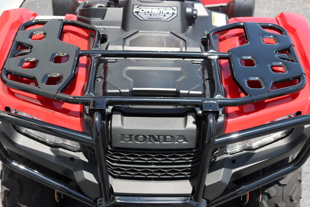 The Foreman’s racks feature strong steel construction and a large flat area. The front rack has a 88-pound capacity and the rear carries up to 176 pounds.