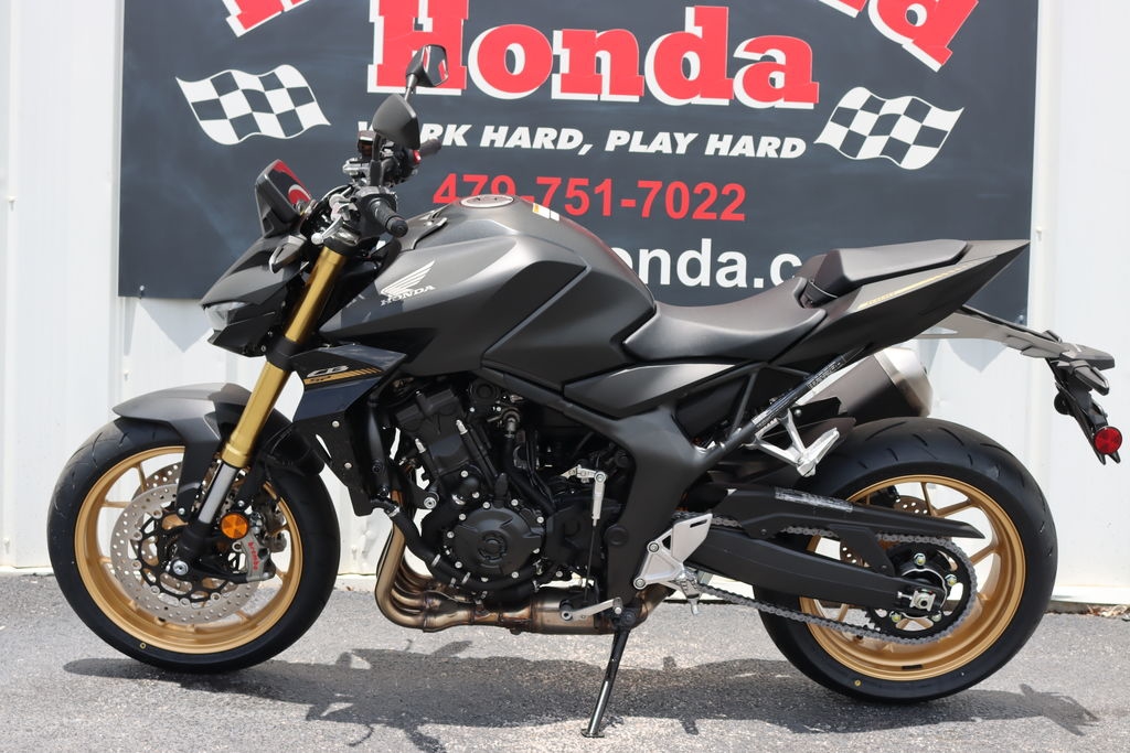 2025 Honda CB1000 Hornet SP Naked Performance & Everyday UsabilityFor Sale at Heartland Honda Powersports & Marine in Springdale, ArkansasThe 2025 CB1000 Hornet SP delivers litre-class power, sharp handling, and premium hardware all wrapped in a stripped-down streetfighter frame that works as well on twisty backroads as it does on daily rides. With a 1000cc liquid-cooled inline-four engine, a lightweight chassis, and high-end suspension and brakes, this is one of the most exciting naked bikes Honda offers.Why the CB1000 Hornet SP Is a Standout1000cc DOHC inline-four engine superbike-derived performance tuned for usable mid-range and top-end power.Premium Showa + hlins suspension 41 mm Showa SFF-BP front fork and hlins rear shock give responsive, adjustable handling for aggressive riding or everyday commuting.Top-tier braking: dual 310 mm discs up front with radial-mount Brembo Stylema calipers and ABS for strong, confidence-inspiring stops.Naked-sport styling + ergonomic comfort upright