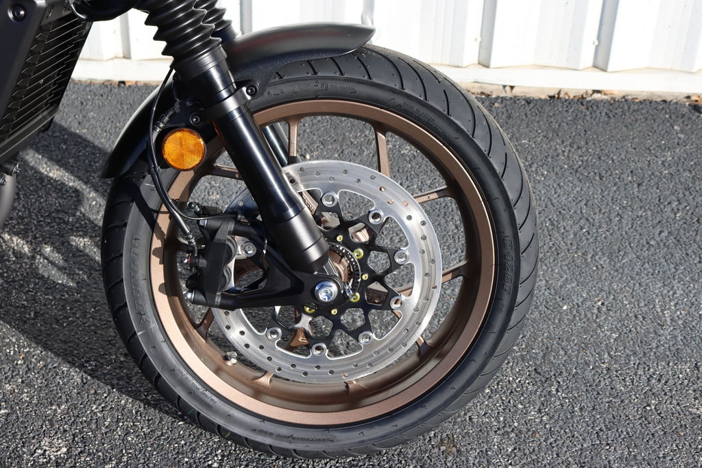 Our SE model offers a touch of special style with the following additional features: a short front fender, bar-end mirrors, fork boots, a custom seat, color-matched headlight cowl and an exclusive Deep Pearl Gray paint job.