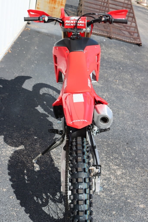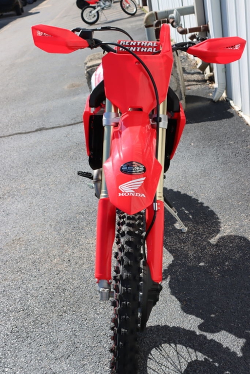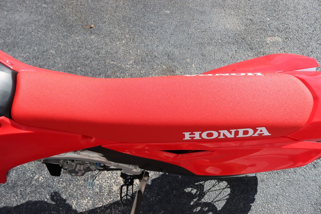 Like our factory racebikes, our CRF competition lineup features the vertically stacked CRF logos that look fast even sitting still.