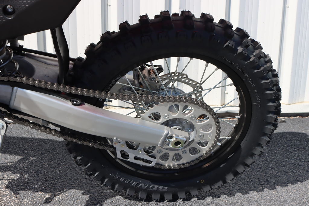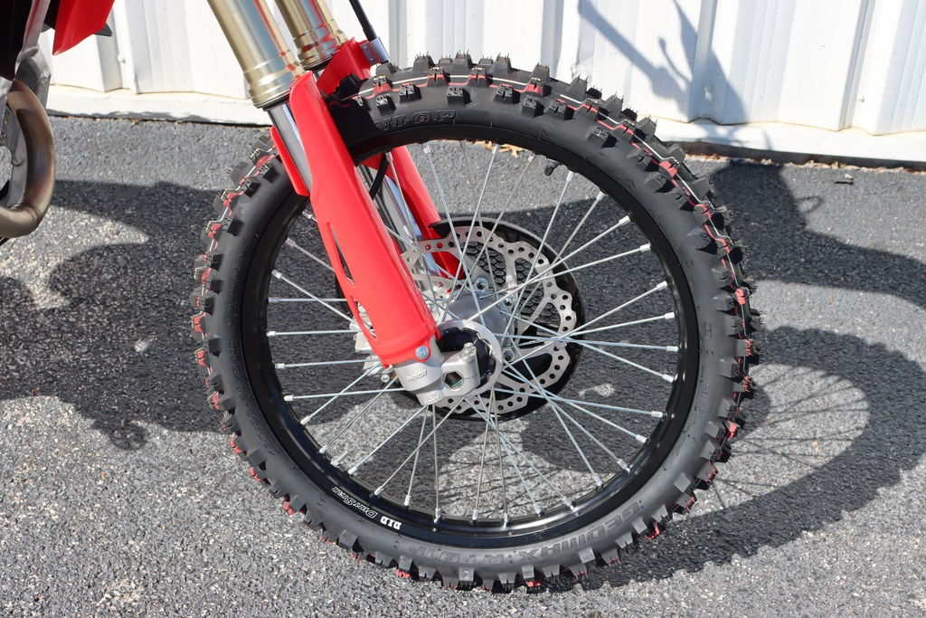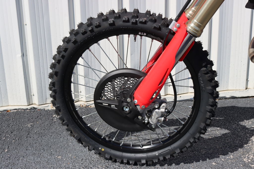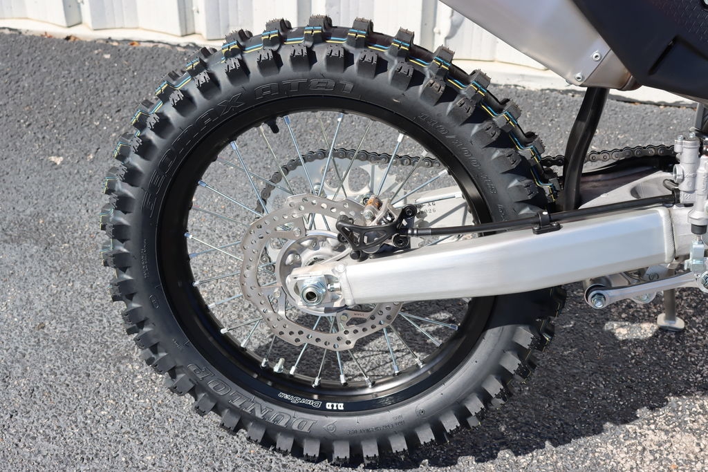 Dunlop’s Geomax AT81 tires are specifically designed for enduro use. They are spec'd at 21 inches for the front and 18 inches for the rear.