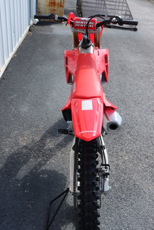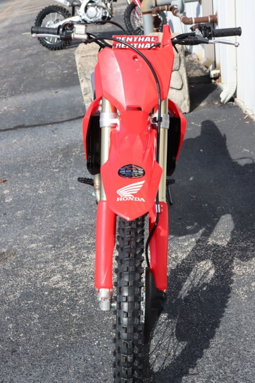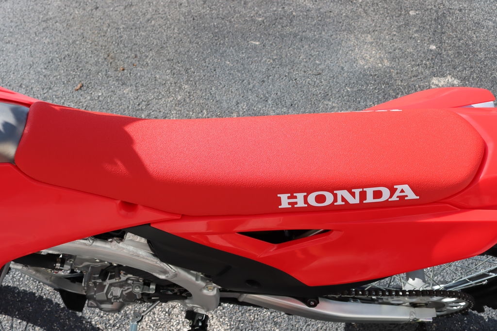 Like our factory racebikes, our CRF competition lineup features the vertically stacked CRF logos that look fast even sitting still.