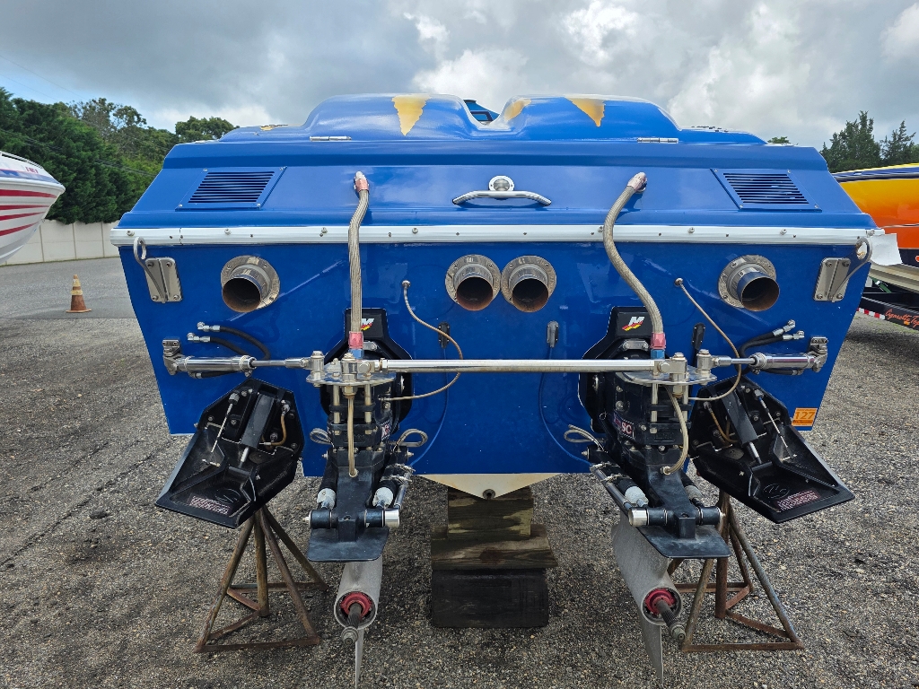 Beautiful and powerful 100mph plus boat with two new motors with less than 50 hours on them.  Fully serviced and ready to be put in the water for the summer.