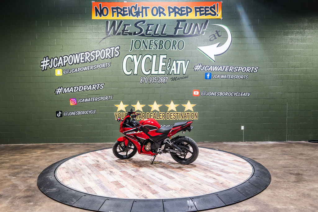 Honda’s CBR®300R is proof that fun comes in all sizes. This bike delivers a giant dose of it - way out of proportion to its engine size. Whether this is your first bike or you have a garage full of them, the CBR®300R is a blast to ride. Its single-cylinder engine provides a wide torque spread that performs well in-town or on the freeway, and offers excellent fuel efficiency. Plus, its narrow single-cylinder engine makes it easier to sit on the bike and get your feet on the ground at stops. But the CBR®300R really comes alive on twisty roads, where its light weight and nimble handling chew up the curves.