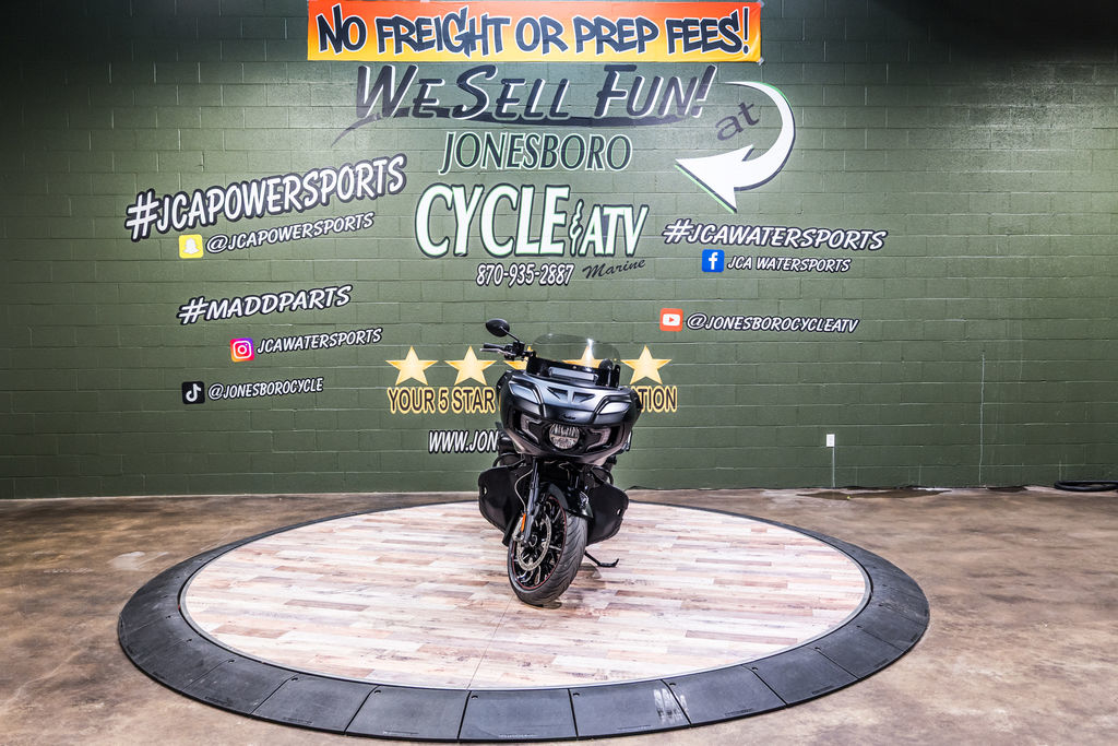 Aggressive fairing design with full LED lighting and menacingly styled running lights provide a signature face that leads the way in both style and function.