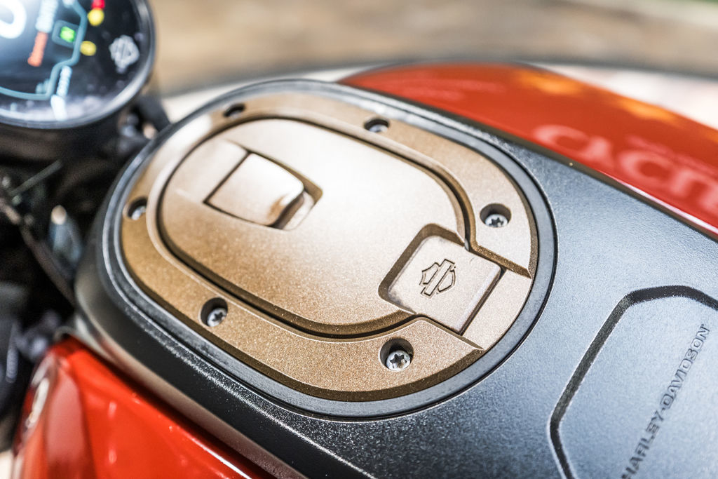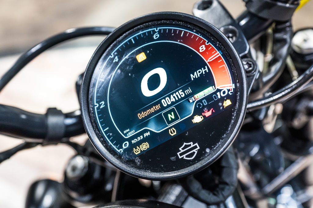 A Bluetooth®-equipped, four-inch-round, thin-film transistor display shows digital gauges, indicators, ride modes, and turn-by-turn navigation when paired with the Harley-Davidson mobile app.
