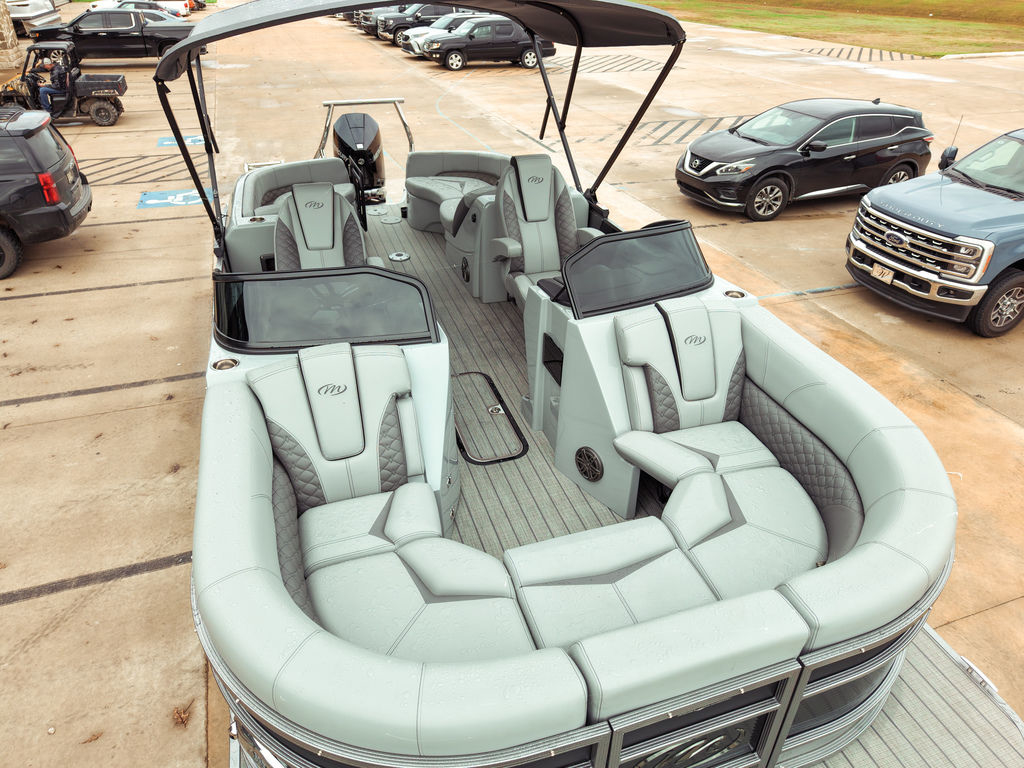The LX 23 RFXW includes full bench seating for bow and stern with the addition of a full windshield helm for both the driver and passenger. Room for up to 13 persons and a max horsepower of 300 HP (500 HP Dual Engine).