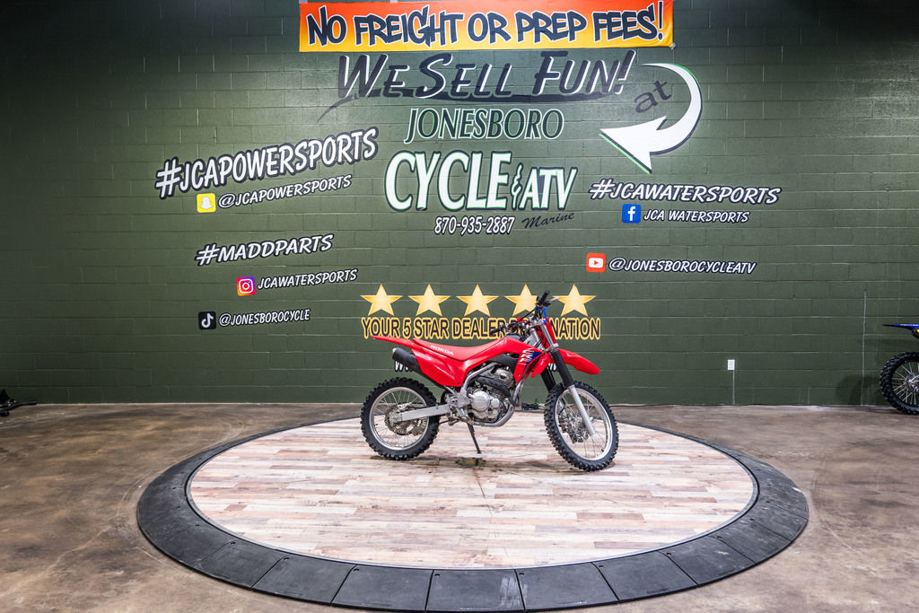 What’s the difference between a CRF250R and a CRF250F? The first one is designed for serious racers, while the CRF250F is the perfect choice for just about everyone else. Built for trail riding and off-road fun, it offers the features that make Honda your best choice. First, its legendary reliability. Next, its refined ergonomics, that means you’ll have a blast riding all day long. Fuel injection means no clogged carburetor jets after a winter off, and air cooling keeps things simple. And finally, since it's styled like our championship-winning CRF-R models, youl’l feel like a factory pro even if you're just out having fun. Sized right for most adults, this is probably one of our most-loved bikes in our off-road fun lineup.