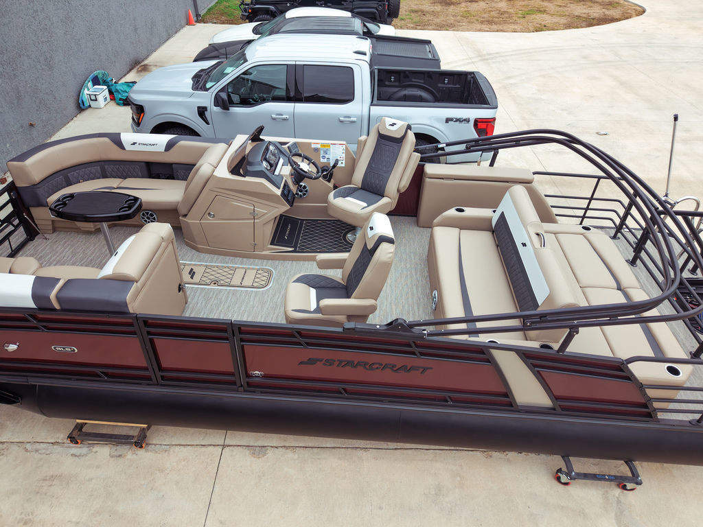 The Starcraft SLS Series Pontoon delivers cutting-edge performance with HMX third tube performance tubes. Strategically placed strakes provide better lift, reduced drag, faster planing, and tighter turns, making every ride smooth, stable, and exciting. Designed for both cruising and watersports, the SLS Series offers a versatile pontoon boat experience for the whole family.