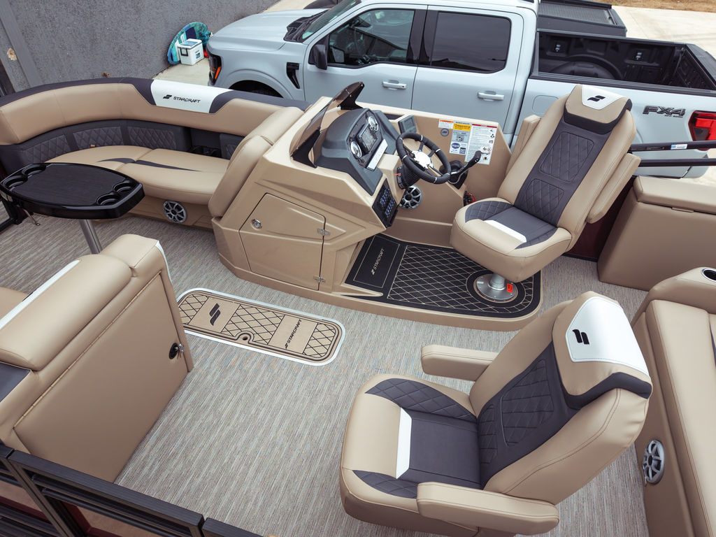 The Starcraft Pontoon SLS 3 Q DH, where "DH" stands for Dual Helm, is an exceptional choice for those who crave both performance and versatility on the water. Equipped with the HMX Third Tube Performance Package, this pontoon delivers enhanced stability and agility, ensuring an exhilarating ride with every outing. The standout feature is the convertible flip back lounge, allowing for effortless transitions between relaxation and active fun, accommodating both lounging and socializing. With its sleek dual helm design and thoughtfully crafted amenities, the SLS 3 Q DH promises a fantastic experience for families and friends alike, making every day on the water truly memorable.