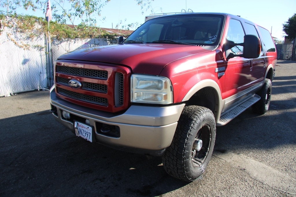 Price: View Listing 2005 Ford Excursion Eddie Bauer SUV VIN: 1FMSU45P55EC25143 Stock: Mileage: 196,266 Color: Toreador Red Clearcoat Metallic Trans: 5-Speed Automatic Engine: 6L V8 32V MPG: Drivetrain: 4x4 Contact Us