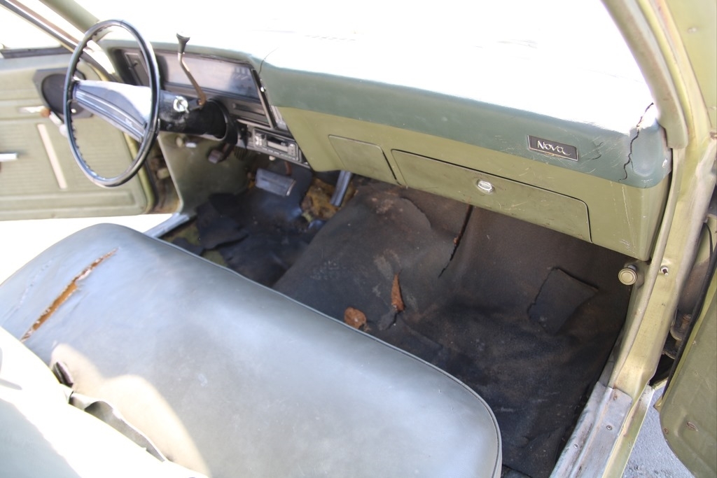 This Nova is equipped with a 4.1L and an Inline 6 Cylinder engine and a Automatic Transmission. Odometer is only 5 digits and shows 20,146 miles. It appears to have all the standard equipment. The exterior is Green in color and has Green interior. Please see photos for more detailed description of vehicle and its overall condition.