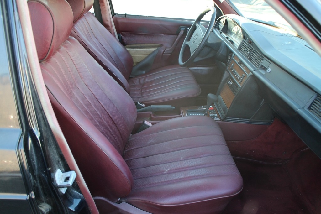 This 190E is equipped with a 2.3L 4 Cylinder engine and a Automatic Transmission. Odometer shows 066,198 . It appears to have all the standard equipment. The exterior is Black in color and has Burgundy interior. Please see photos for more detailed description of vehicle and its overall condition.