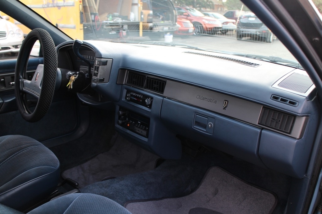 This Cutlass Calais is equipped with a 2.5L 4 cylinder engine and an automatic transmission. Odometer shows 106,268 miles. It appears to have all the standard equipment. The exterior is blue in color and has blue interior. Please see photos for more detailed description of vehicle and its overall condition.