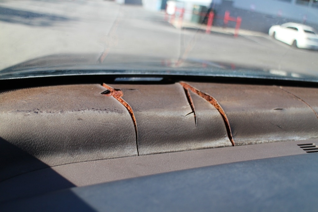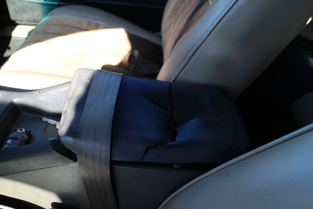BLACK AND TAN INTERIOR WITH SOME WEAR ~ PLEASE OBSERVE PHOTOS ~ REAR-VIEW MIRROR IS BROKEN AND DASH IS CRACKED