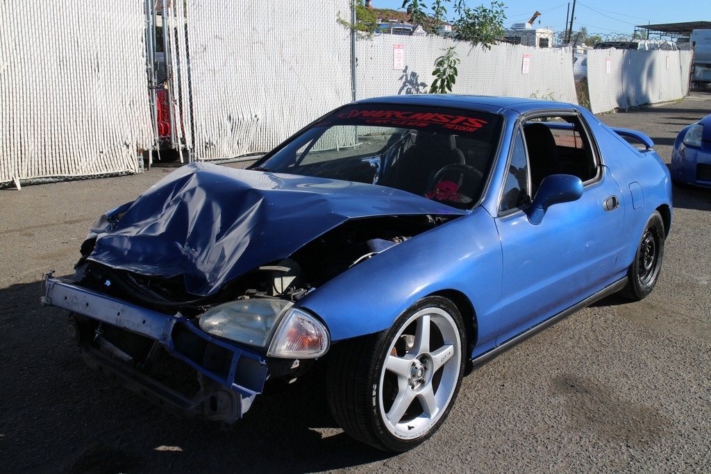 This Del Sol is equipped with a 1.5L 4 cylinder engine and a manual transmission. Odometer could not be read (True Mileage Unknown). It appears to have all the standard equipment. The exterior is blue in color and has gray cloth interior. Please see photos for more detailed description of vehicle and its overall condition.