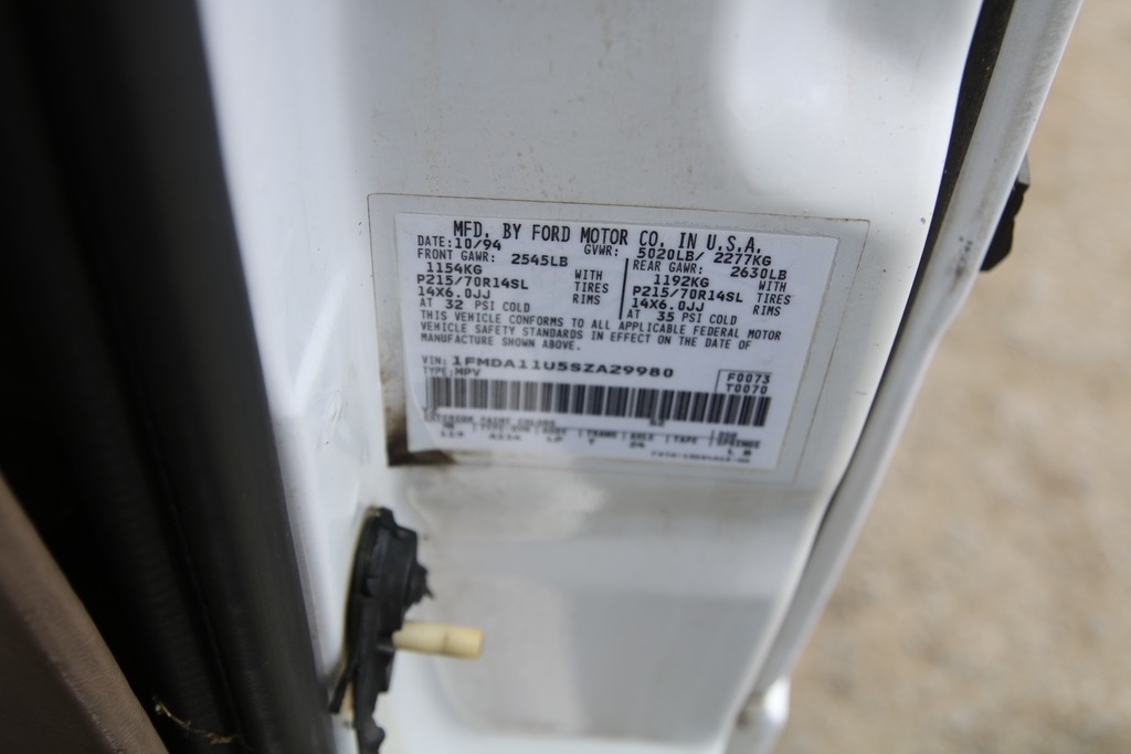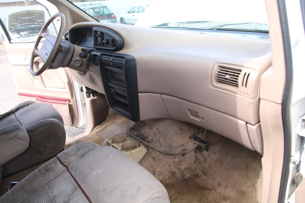 This Aerostar XLT is equipped with an 3.0 L 6 cylinder engine and an automatic transmission. Odometer shows unknown miles. It appears to have all the standard equipment. The exterior is white in color and has tan cloth interior. Please see photos for more detailed description of vehicle its overall condition..
