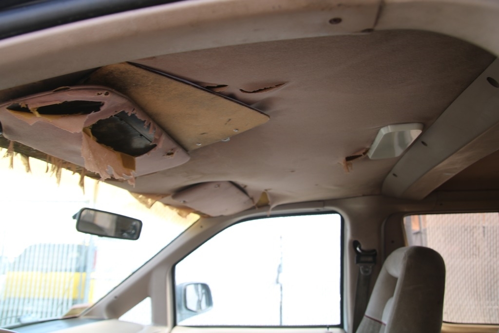 TAN CLOTH INTERIOR WITH SOME WEAR (SEE PICTURES)