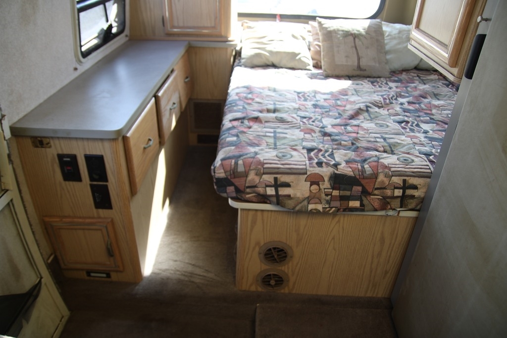 This RV is equipped with a 2.5L 5 cylinder engine and an automatic transmission. The odometer shows 44,050 miles. It appears to have all the standard equipment. The exterior is white in color and has a gray cloth interior. Please see photos for a more detailed description of the vehicle and its overall condition.