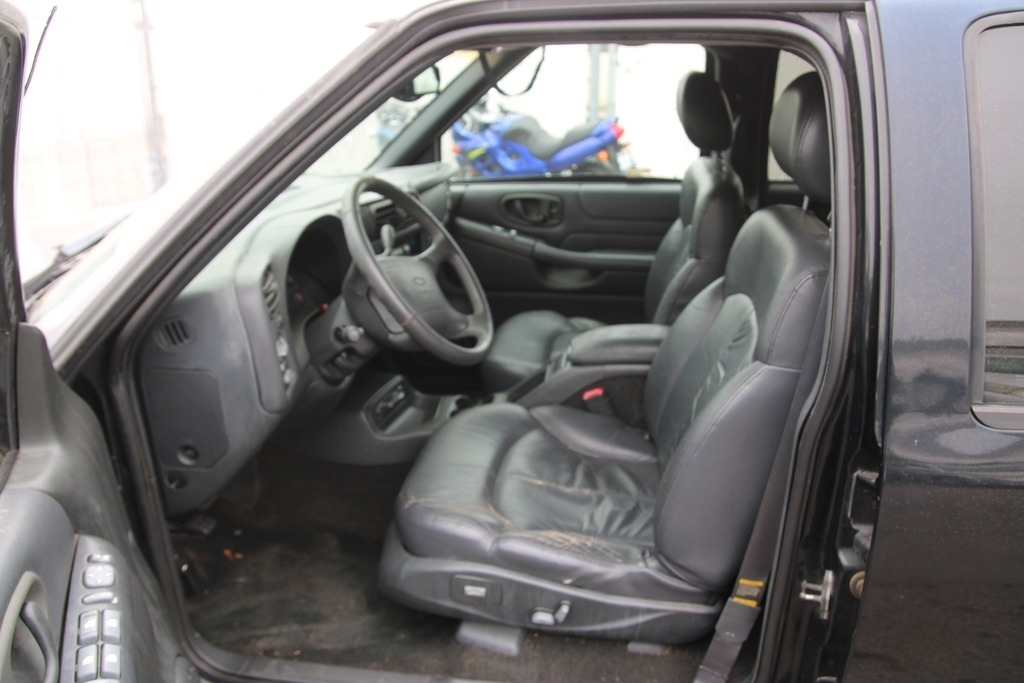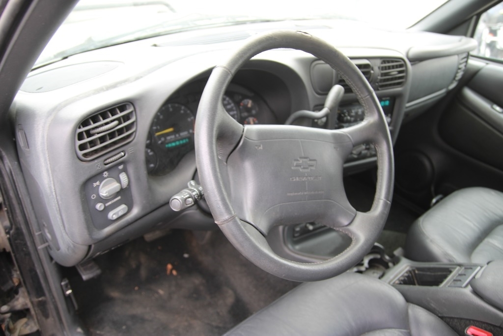 This Blazer is equipped with a 4.3L 6 cylinder engine and an automatic transmission. The odometer shows 104,987 low miles. It appears to have all the standard equipment for this trim level. The exterior is black leather in color and has black leather interior. Please see photos for more detailed description of the vehicle and its overall condition.