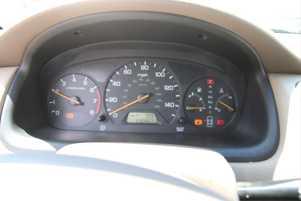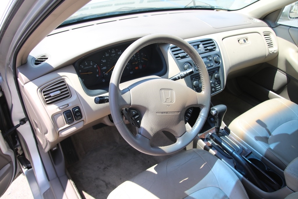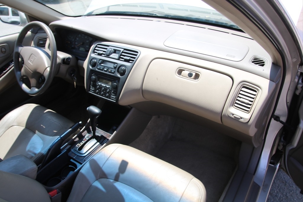 This Accord Sedan is equipped with a 3.0L 6 cylinder engine and an automatic transmission. The odometer shows 232,608 miles. It appears to have all the standard equipment for this trim level. The exterior is tan in color and has tan leather interior. Please see photos for more detailed description of the vehicle and its overall condition.
