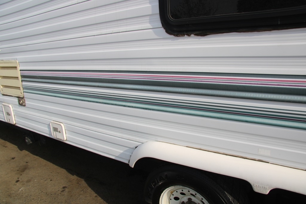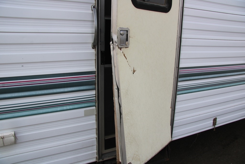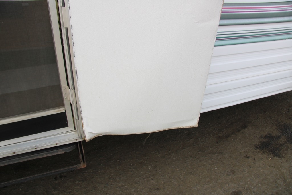 Travel trailer was observed to have visible damage around the exterior of the of the trailer