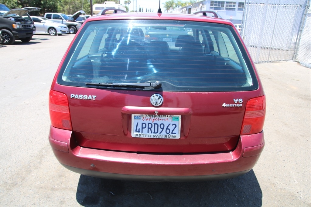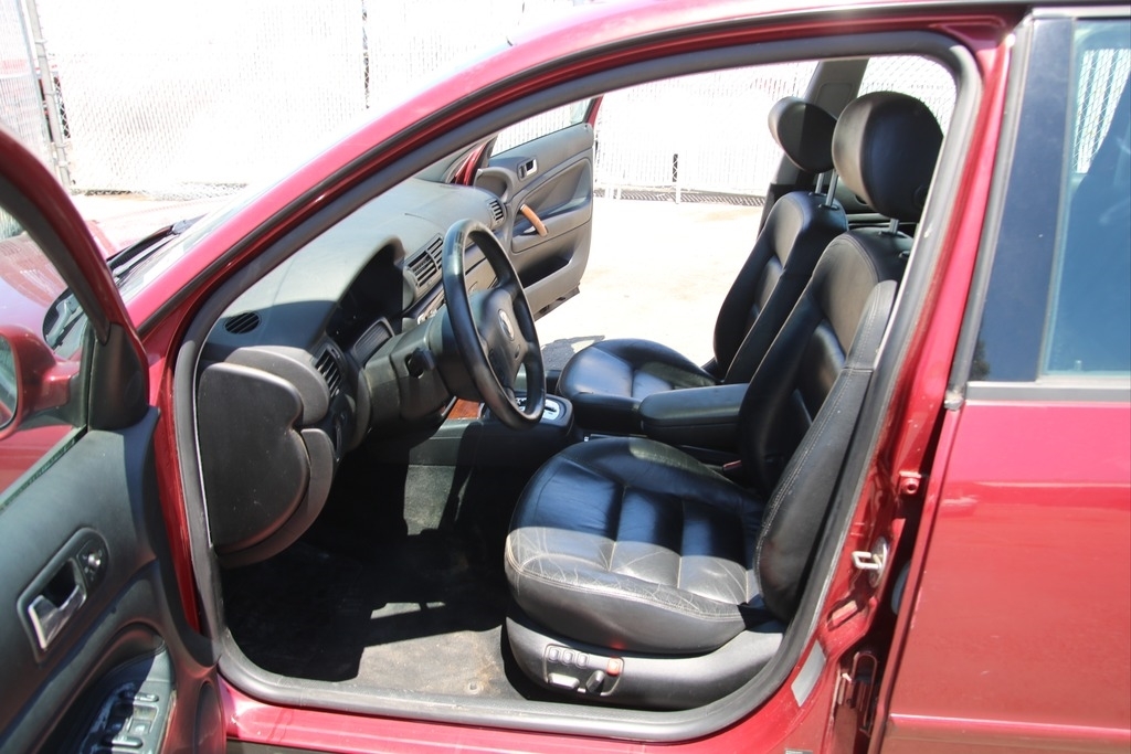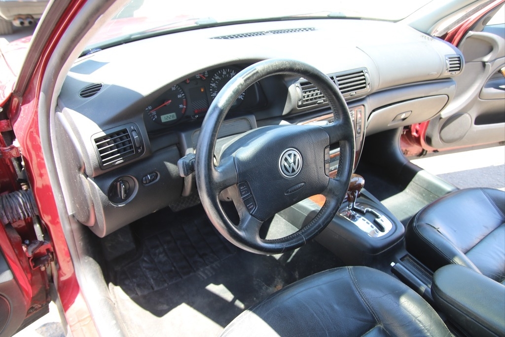 This Passat Wagon is equipped with a 2.8L 6 cylinder engine and an automatic transmission. The odometer shows 173,301 miles. It appears to have all the standard equipment for this trim level. The exterior is red in color and has black leather interior. Please see photos for more detailed description of the vehicle and its overall condition.