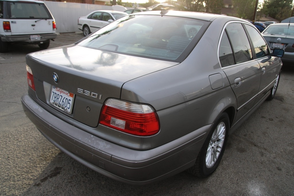 This 530i Sedan is equipped with a 3.0L 6 cylinder engine and an automatic transmission. The odometer shows 228,463 miles. It appears to have all the standard equipment for this trim level. The exterior is gray in color and has gray leather interior. Please see photos for more detailed description of the vehicle and its overall condition.